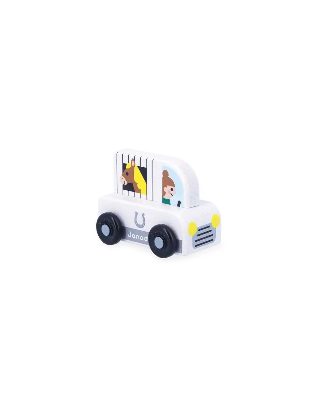 Découvrez le van pour cheval de la collection Cross Roads de Janod, une petite voiture en bois appartenant à l’univers « Campagne« . Parfaite pour les enfants dès 2 ans, cette voiture à pousser est un compagnon idéal pour développer leur imagination.
