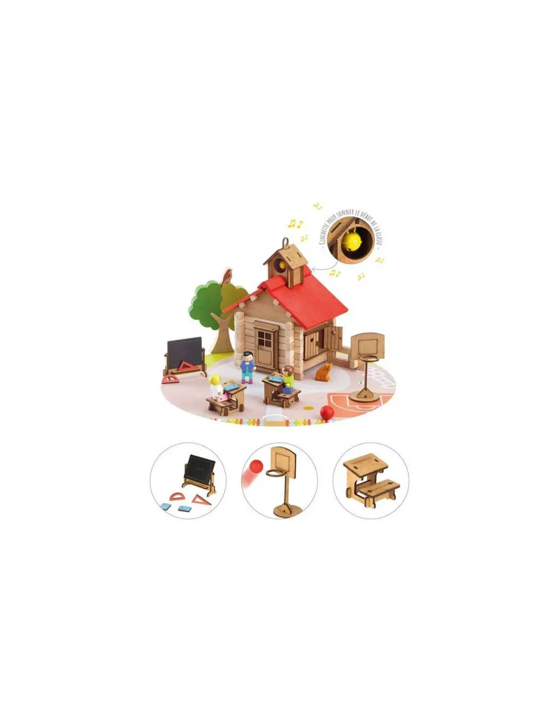 Découvrez L’école du village 125 pièces de Jeujura, un jeu de construction en hêtre comprenant un joli chalet et tout l’univers de l’école, 100% fabriqué en France, conçu pour les enfants à partir de 5 ans.