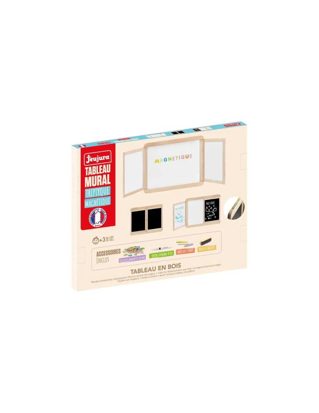 Découvrez le tableau mural triptyque magnétique de Jeujura, un superbe tableau en bois, fabriqué en France, idéal pour les enfants dès 3 ans. Un cadeau ludique et éducatif, parfait pour les filles et les garçons qui aiment écrire, dessiner et laisser libre cours à leur imagination.