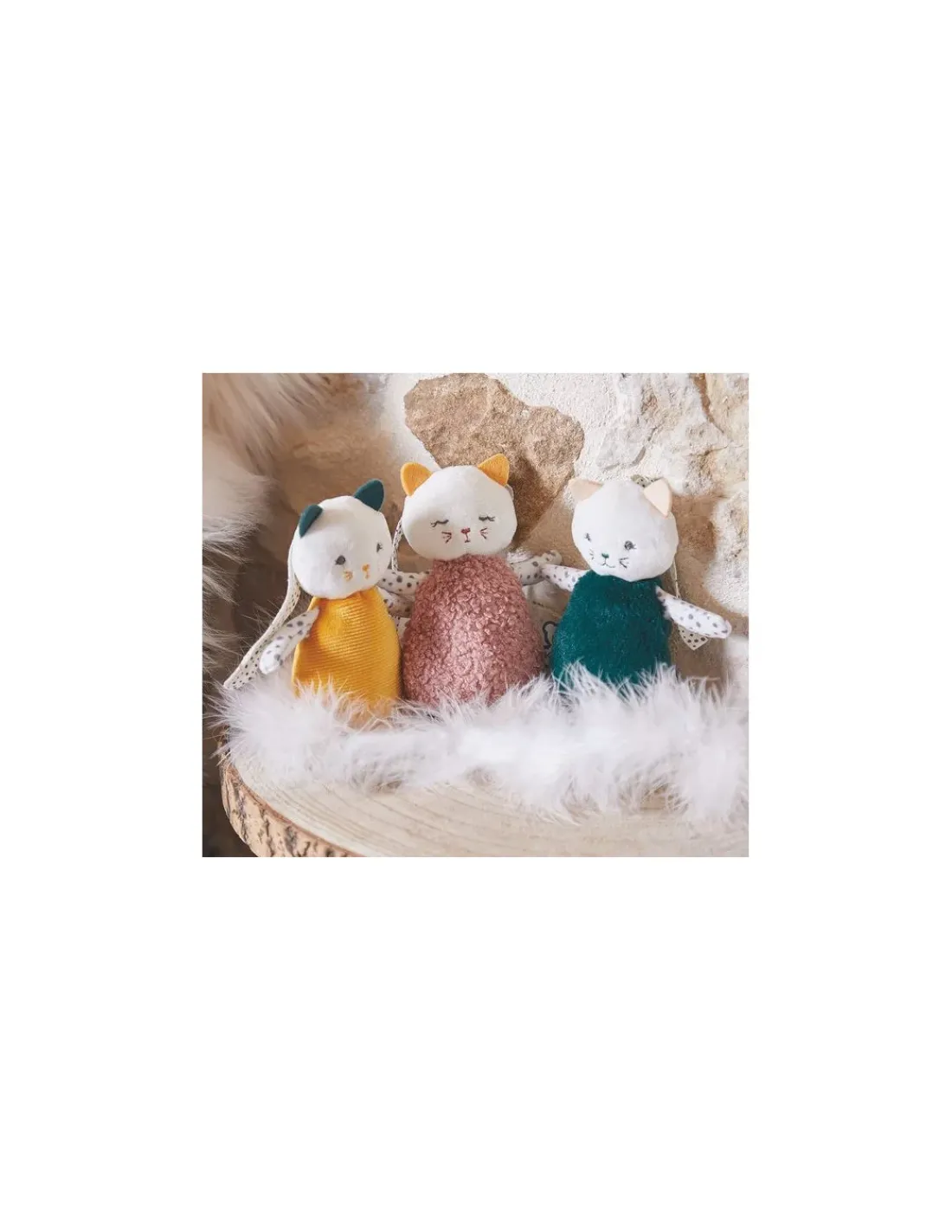 Découvrez le set de doudous sensoriels de la collection Stimuli de Kaloo, un coffret comprenant trois petites peluches en forme de chat pour éveiller les sens de bébé en douceur dès sa naissance.