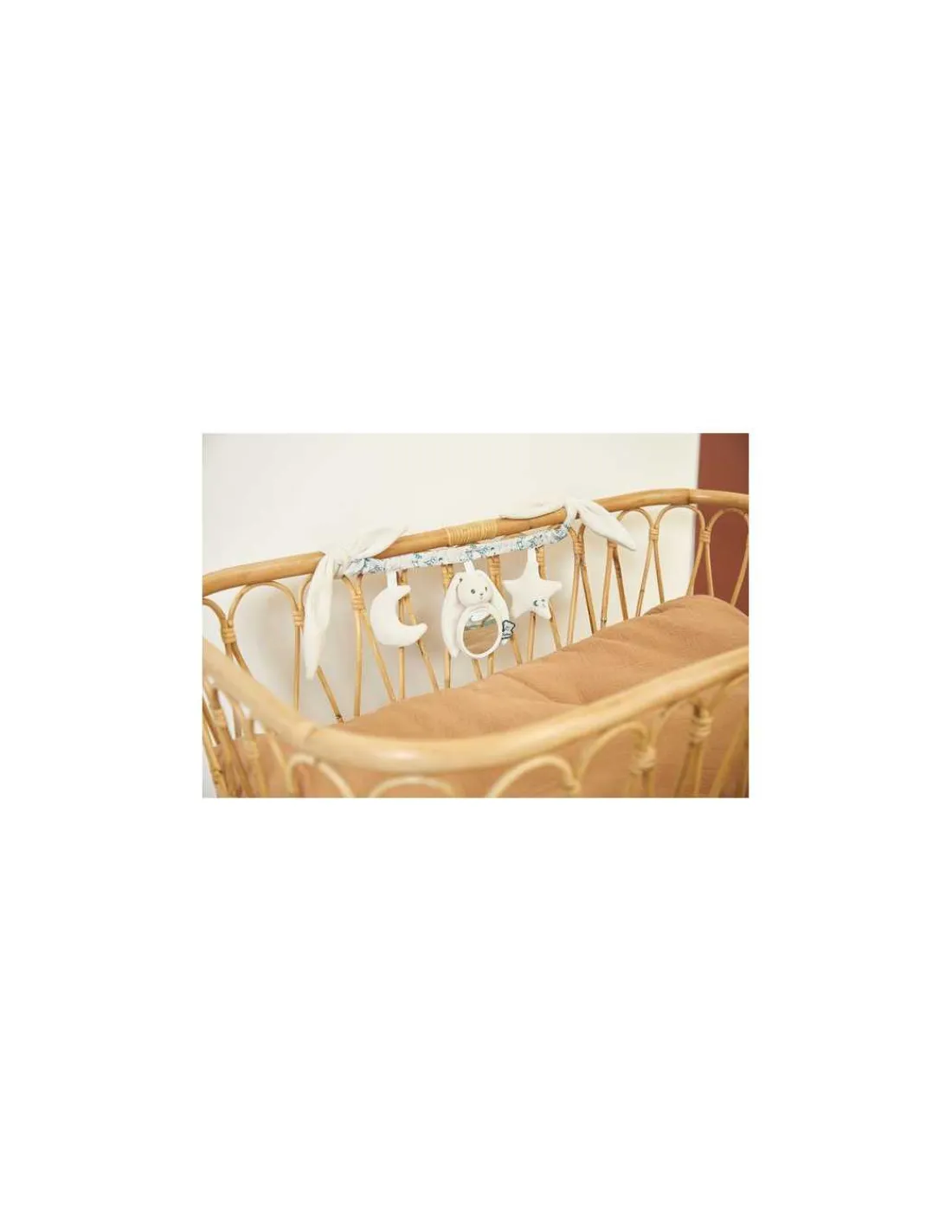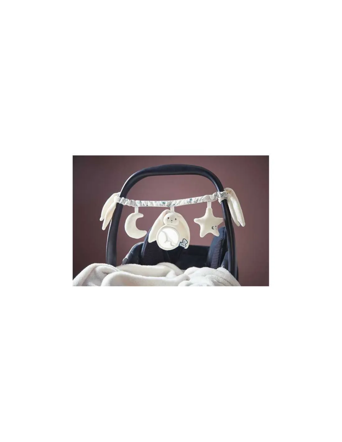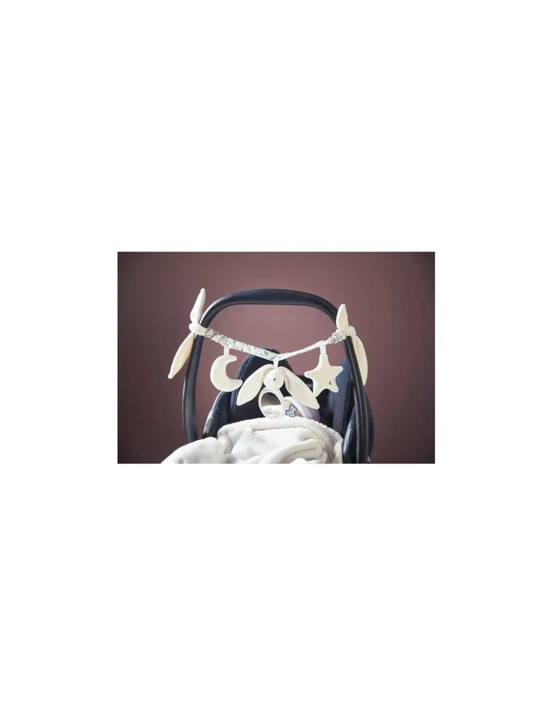 Grâce à ses longues oreilles, la chaîne s’attache partout facilement. Un jouet à accrocher au cosy, au landau ou au siège auto pour divertir bébé lors des sorties et des promenades.