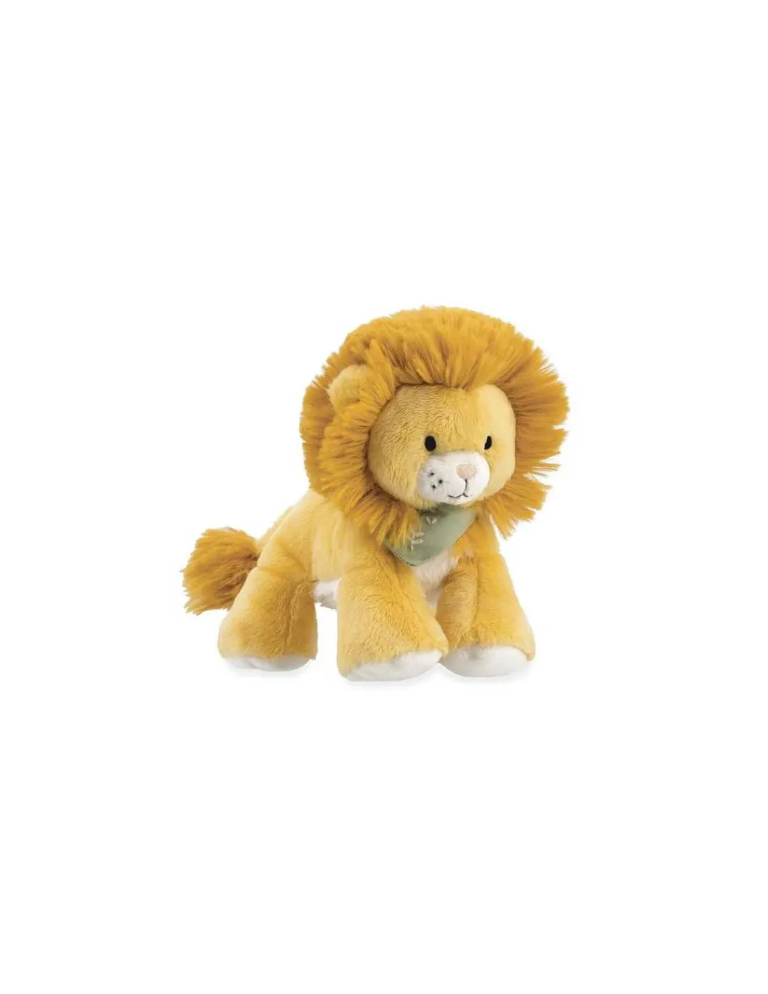 Un joli ami tout doux avec sa bouille craquante pour accompagner bébé partout où il ira. Un doudou qui stimule l’affect et l’empathie aux teintes lumineuses et contrastées. Nougat le lion a une crinière ultra douce à caresser et à coiffer et un beau bandana vert, rappel de la nature avec une nouvelle broderie avec de douces feuilles.