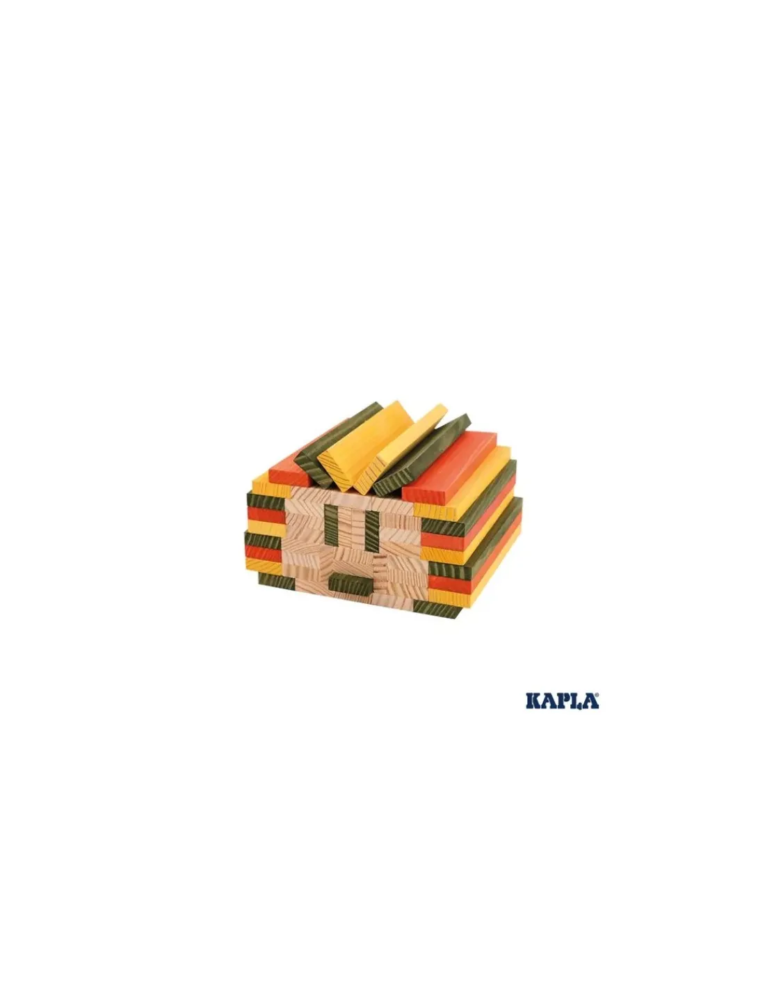 Un coffret qui contient 140 planchettes couleur bois, 20 planchettes orange, 20 planchettes jaunes et 20 planchettes vertes ainsi qu’un triptyque format A5 présentant 3 constructions inédites étape par étape. Des constructions guidées qui en inspireront bien d’autres!