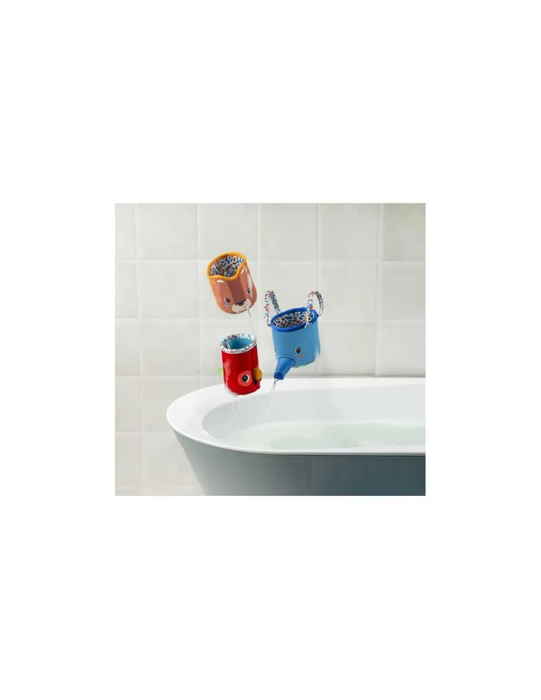 Un set de 3 gobelets idéal pour s’éclater dans la baignoire, comme pour se rafraichir lors d’une chaude journée! Chaque personnage propose un jet d’eau différent : l’eau sort par la trompe de l’éléphant, par les narines du lion… On remplit les gobelets et on arrose à l’infini!