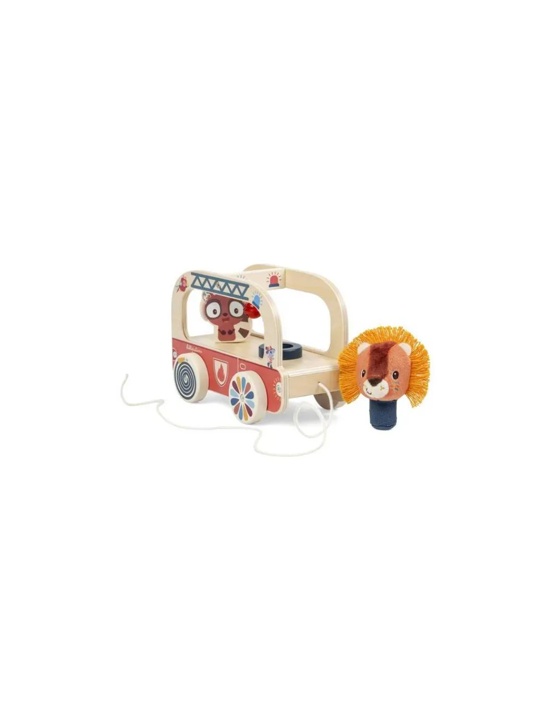Découvrez Jack Camion de pompier de Lilliputiens, un jouet à tirer en bois et tissu conçu pour les enfants dès 10 mois.