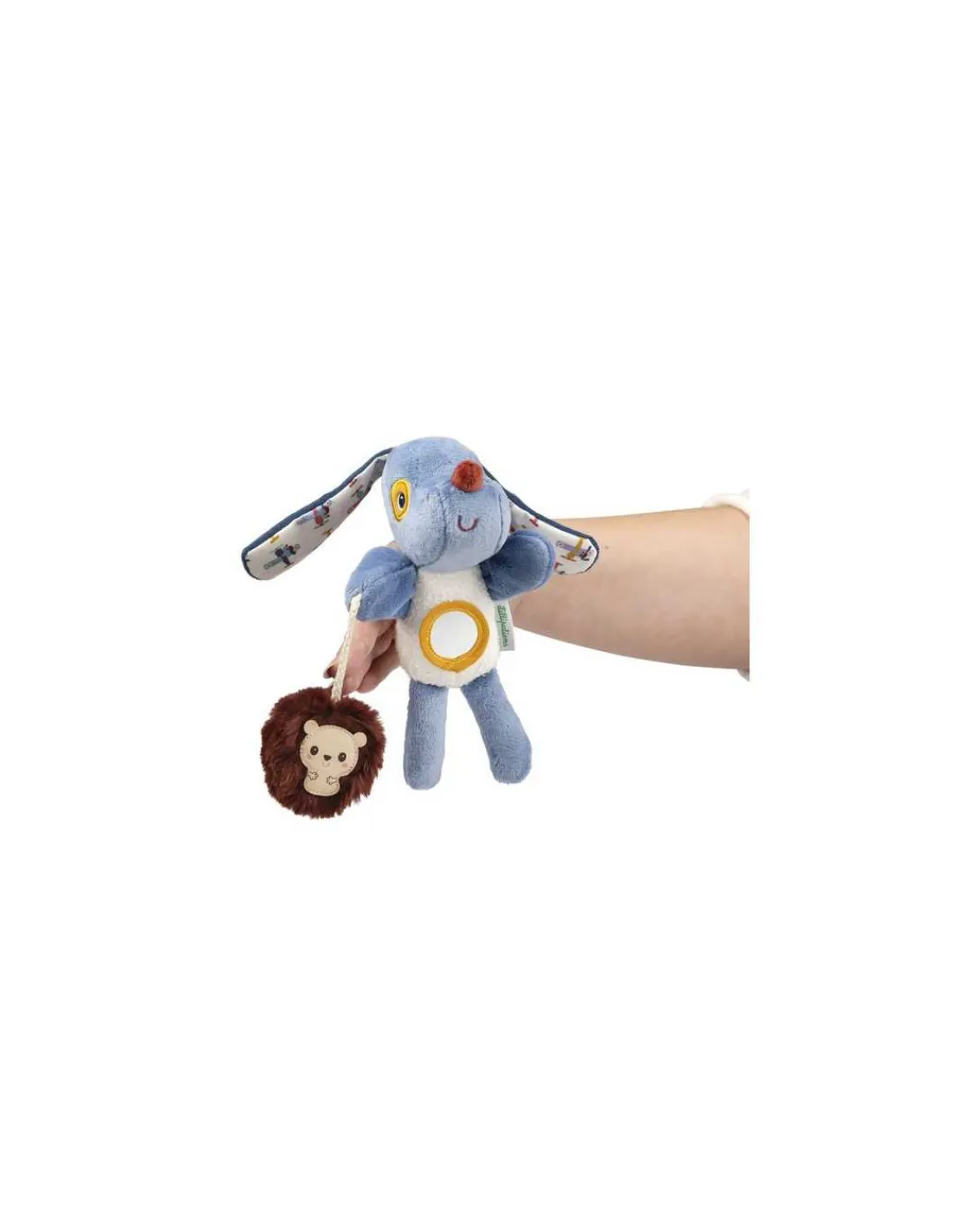 Cette petite marionnette est idéale pour divertir bébé. Avec son format pratique, on peut l’emporter partout avec soi pour la faire prendre vie. Pour cela, passez un doigt dans chaque bras de la marionnette et c’est parti pour le spectacle! Jules propose 3 activités pour divertir et stimuler les sens de votre bébé : un hochet situé au niveau de la tête, un miroir sur son ventre et son compagnon hérisson qui crépite grâce à du papier bruissant.