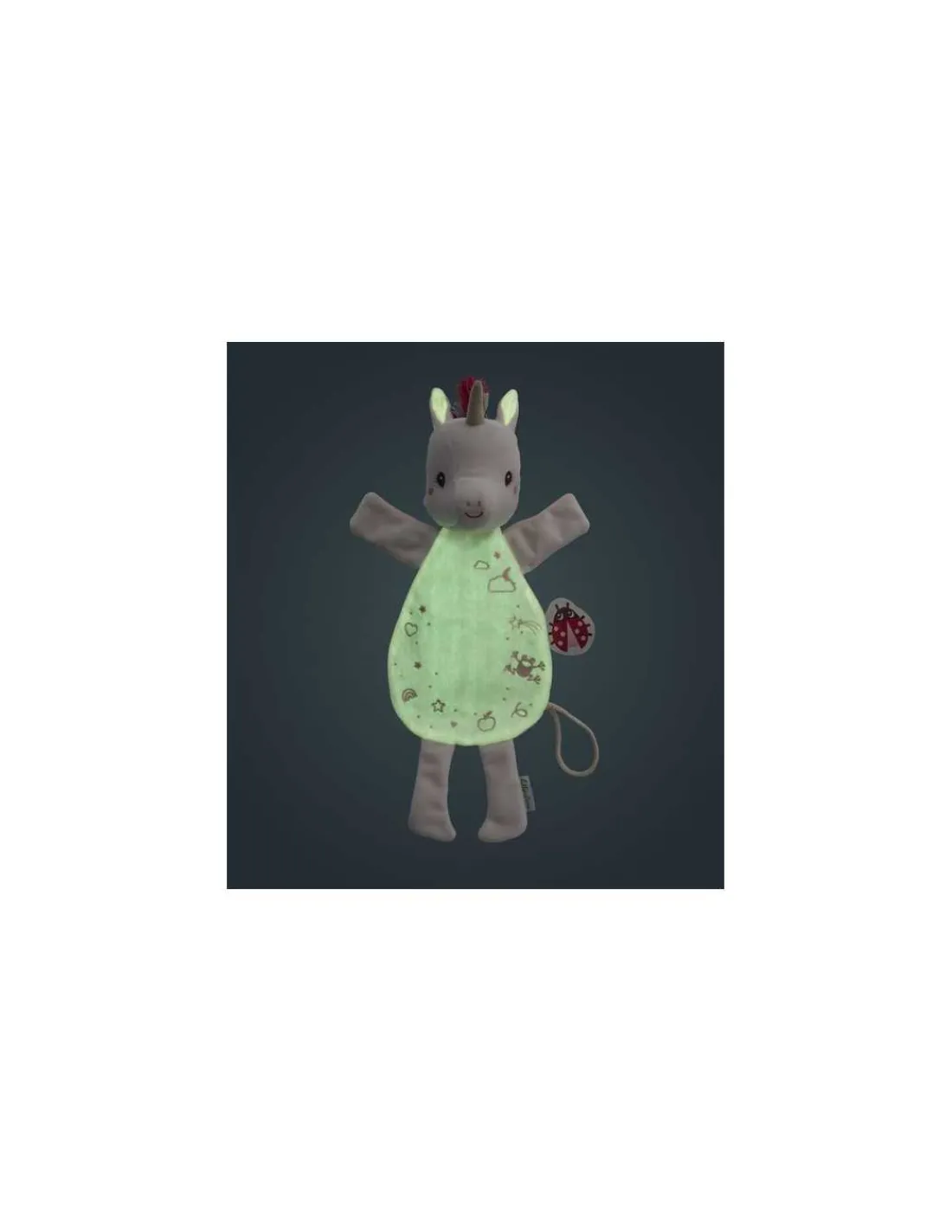 Découvrez le doudou phosphorescent Léna la licorne de Lilliputiens, un doudou qui brille dans la nuit et qui sert aussi de marionnette à offrir en cadeau de naissance.
