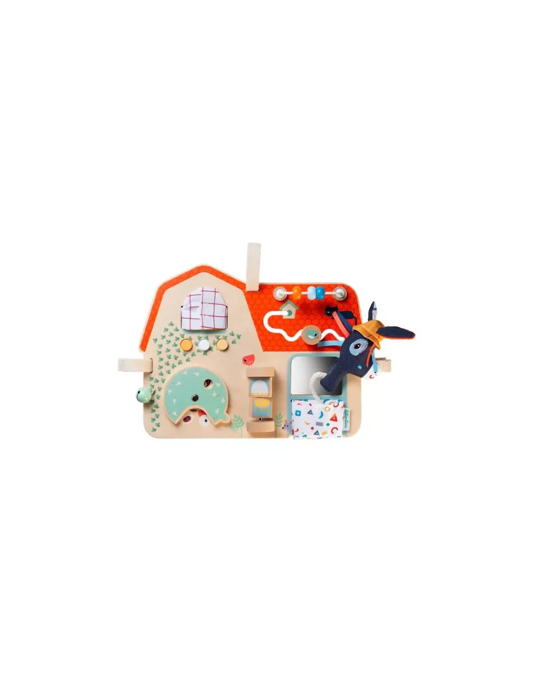 Découvrez le panneau d’activités Ferme ou busy board de Lilliputiens, un splendide jouet d’éveil en bois et en tissu très coloré pour les bébés dès 9 mois. Ce panneau d’éveil s’accroche facilement au parc de votre bambin grâce aux rubans velcro.