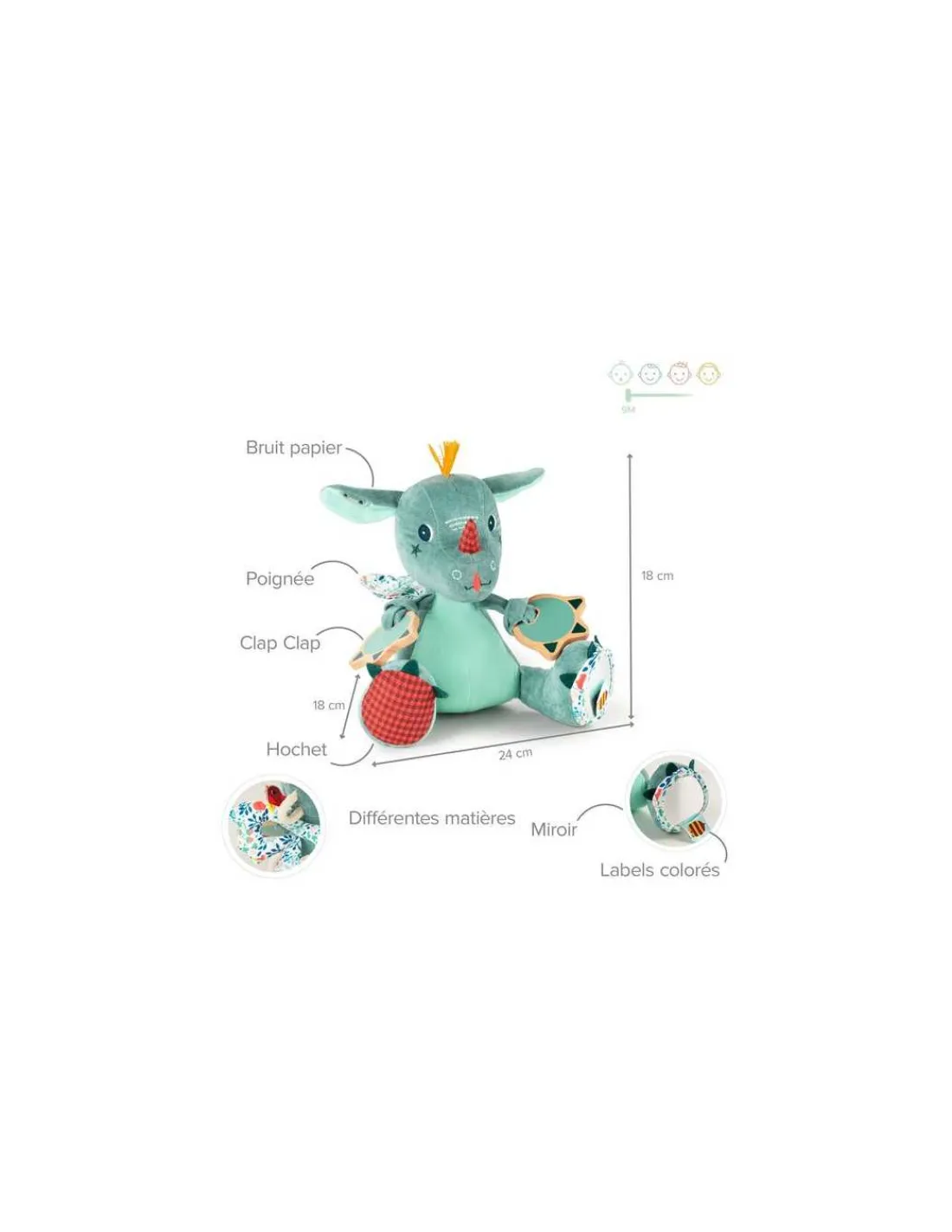 Découvrez la Peluche Joe dragon multi-activités de Lilliputiens, un jouet d’éveil dès 9 mois qui stimulera votre bébé. Clap, clap, qui est-ce? C’est Joe, le gentil dragon. Différents matériaux, textures et activités en font une source de découvertes et un ami inséparable.