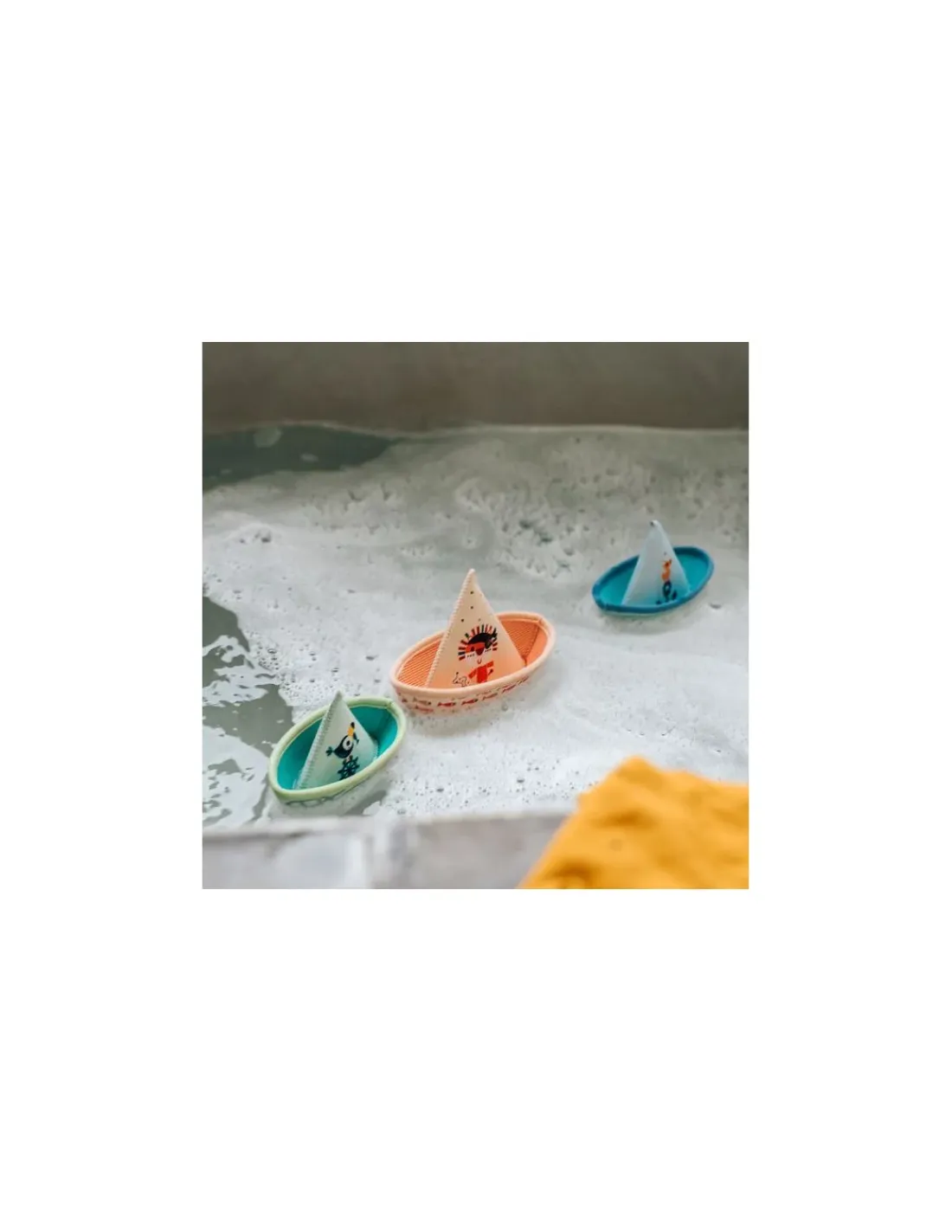 Découvrez les trois petits bateaux flottants de Lilliputiens, des bateaux en néoprène sur le thème de la jungle, qui flottent pour amuser votre enfant dans la baignoire à l’heure du bain.