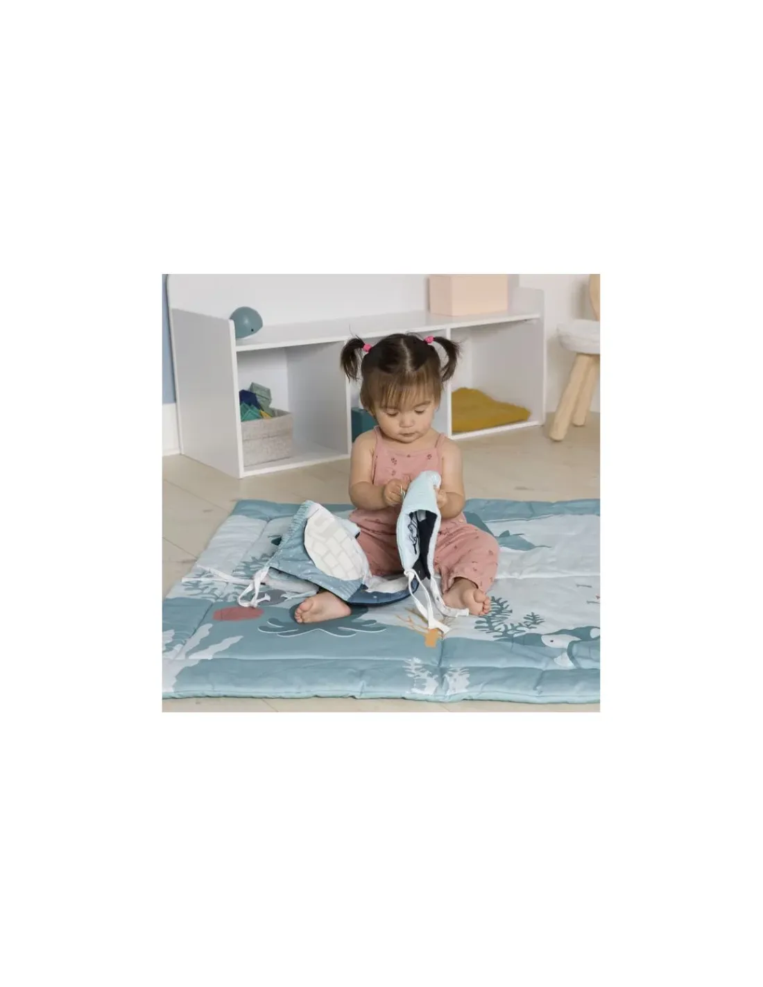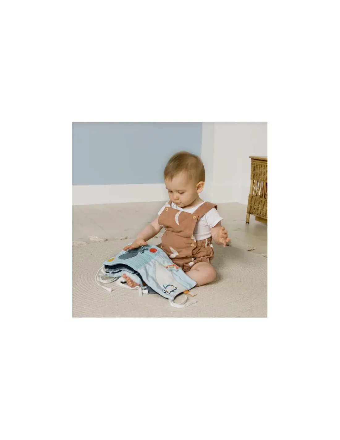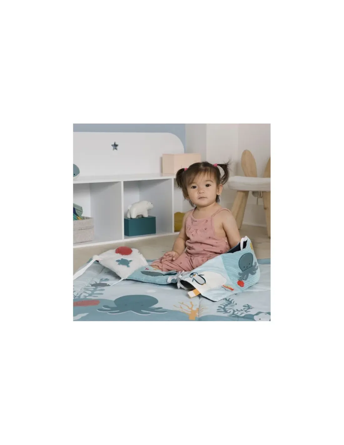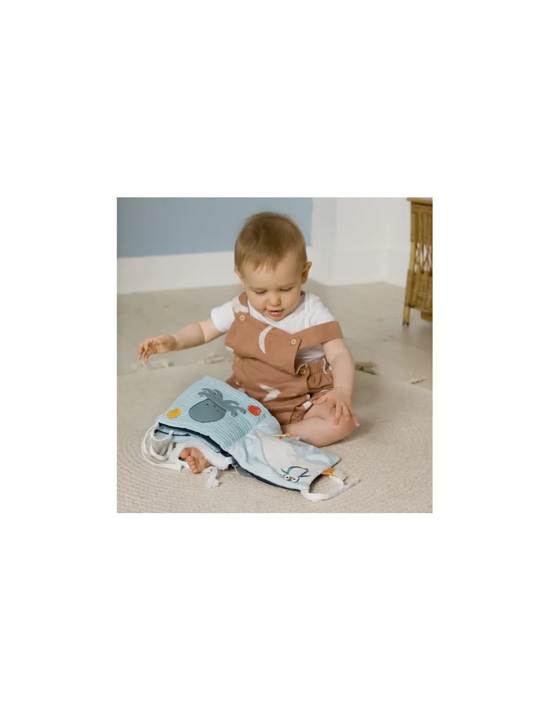 Découvrez le livre d’éveil 2 en 1 océan de Little Big Friends, un grand livre en tissu tout doux qui se déplie et se replie facilement pour les bébés. Un livre sur le thème de l’océan avec un anneau de dentition et un miroir sur l’arrière.