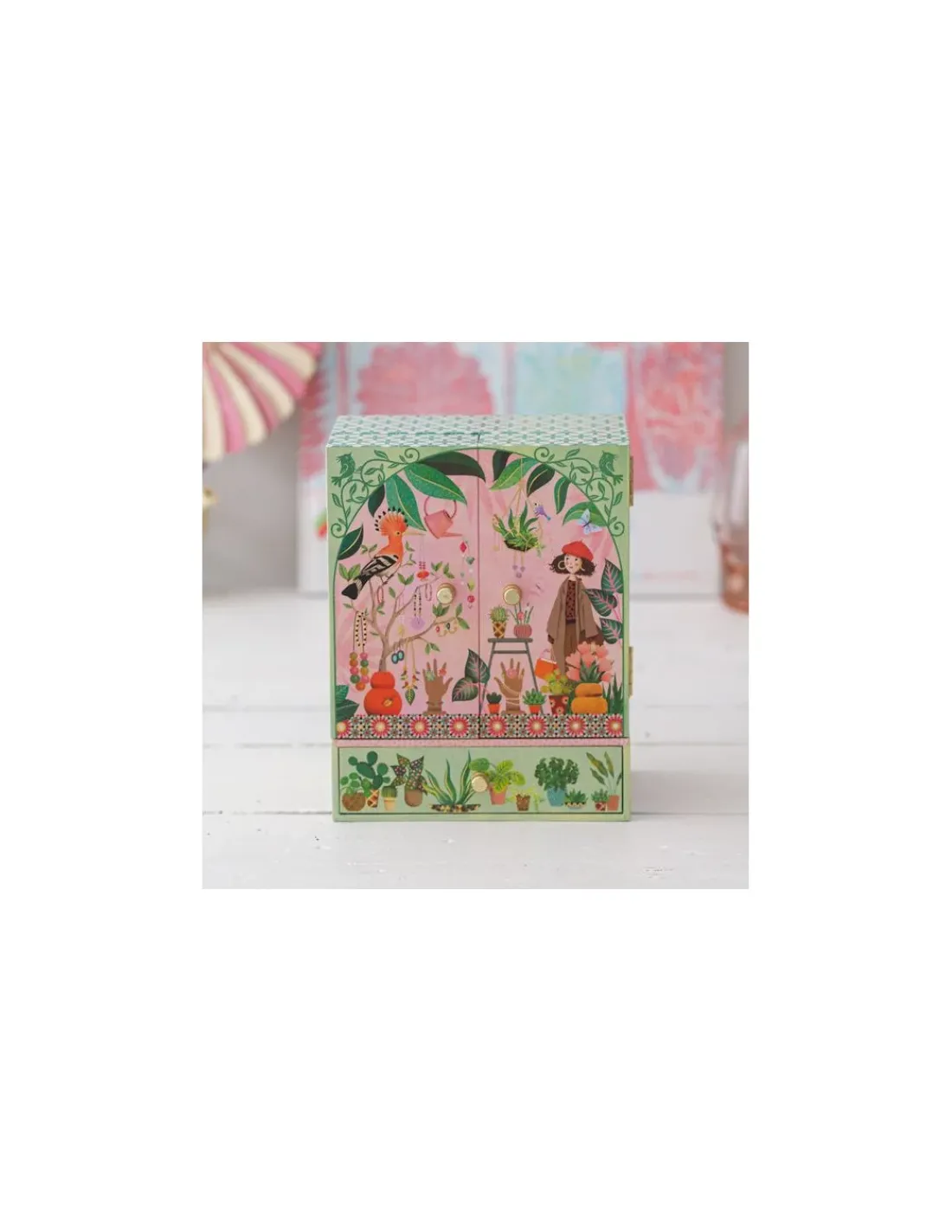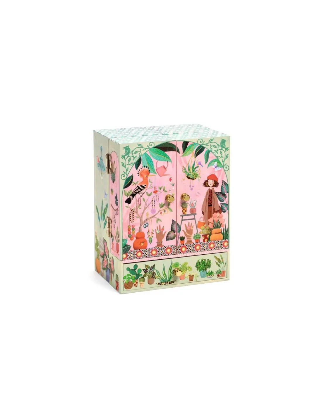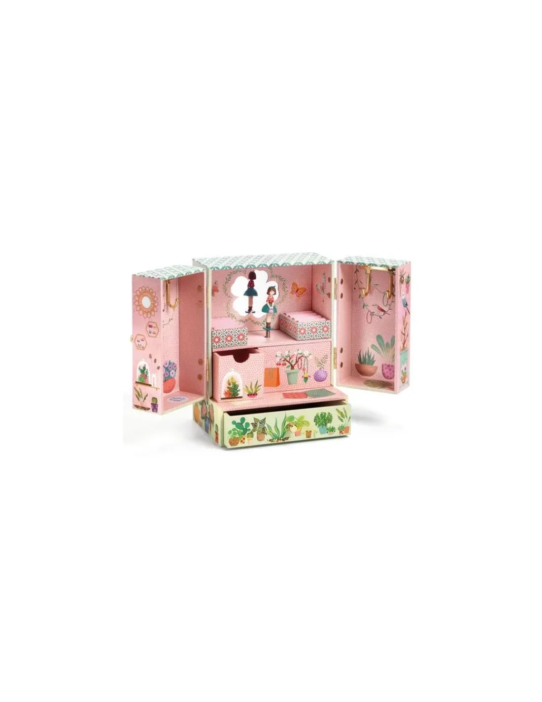 Découvrez la boite à bijoux Jardin secret de Djeco, une boite à musique et une armoire à bijoux à offrir en cadeau. Un joli coffret en bois joliment illustré, tapissé d’un velours très doux et possédant des tiroirs pour ranger ses bijoux et ses secrets.