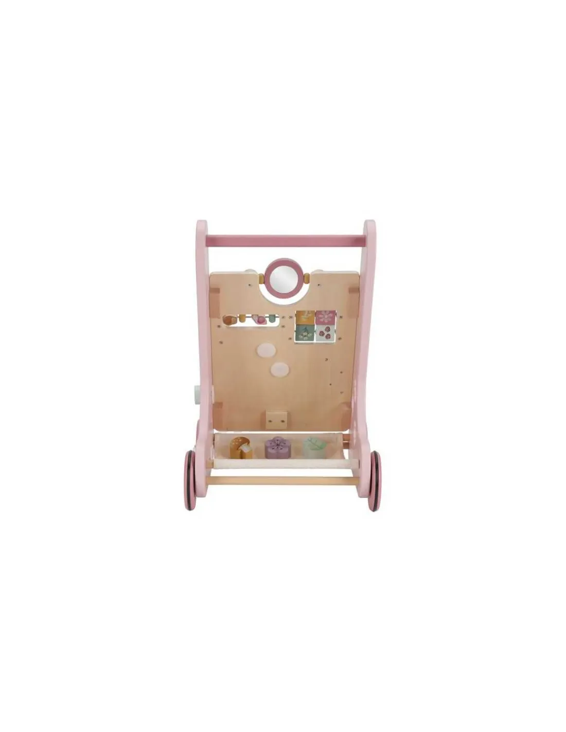 Ce chariot d’activités en bois propose plusieurs activités stimulantes, qui favorisent le développement des capacités motrices de vos enfants. Mettez votre bébé au défi avec les nombreuses activités de ce chariot magnifiquement décoré. Il y a 8 activités à découvrir et à maîtriser : formes à encastrer, boulier, engrenages, miroir…