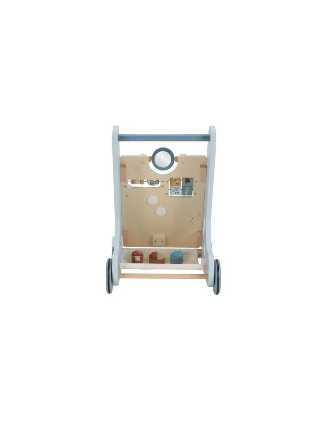 Ce chariot d’activités en bois propose plusieurs activités stimulantes, qui favorisent le développement des capacités motrices de vos enfants. Mettez votre bébé au défi avec les nombreuses activités de ce chariot magnifiquement décoré. Il y a 8 activités à découvrir et à maîtriser : formes à encastrer, boulier, engrenages…
