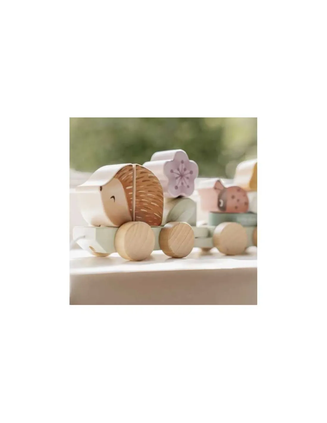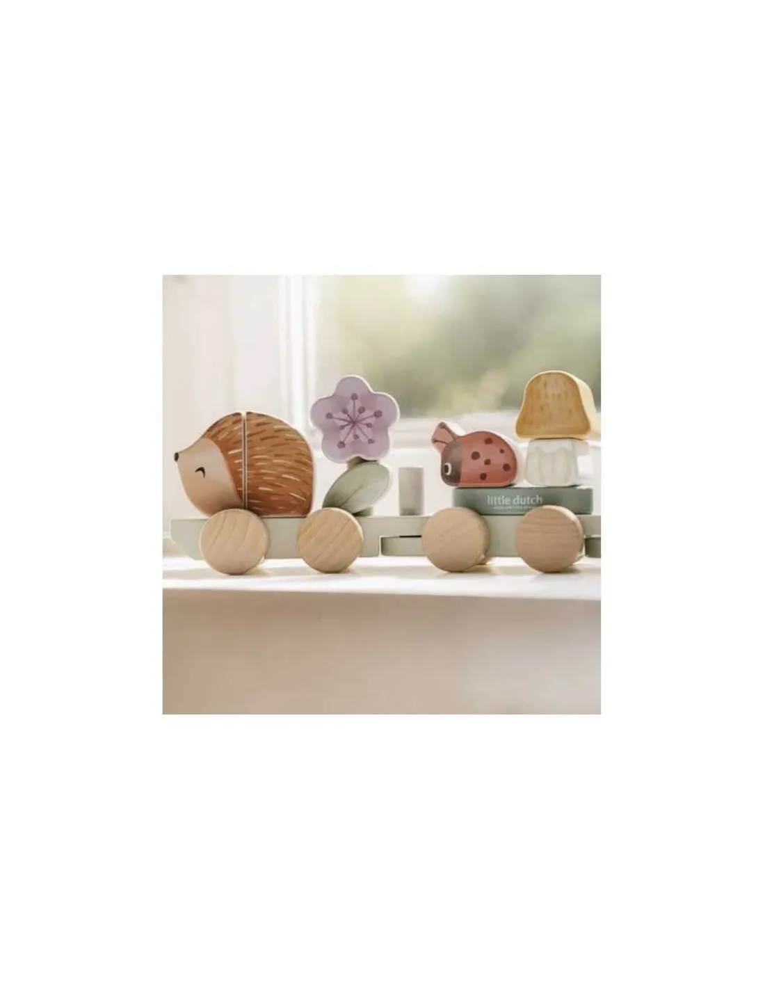 Découvrez le train à blocs hérisson de la collection Fairy Garden de Little Dutch, un jouet en bois 2 en 1 qui combine un jouet à tirer et un jeu à encastrer, parfait pour les enfants à partir de 12 mois.