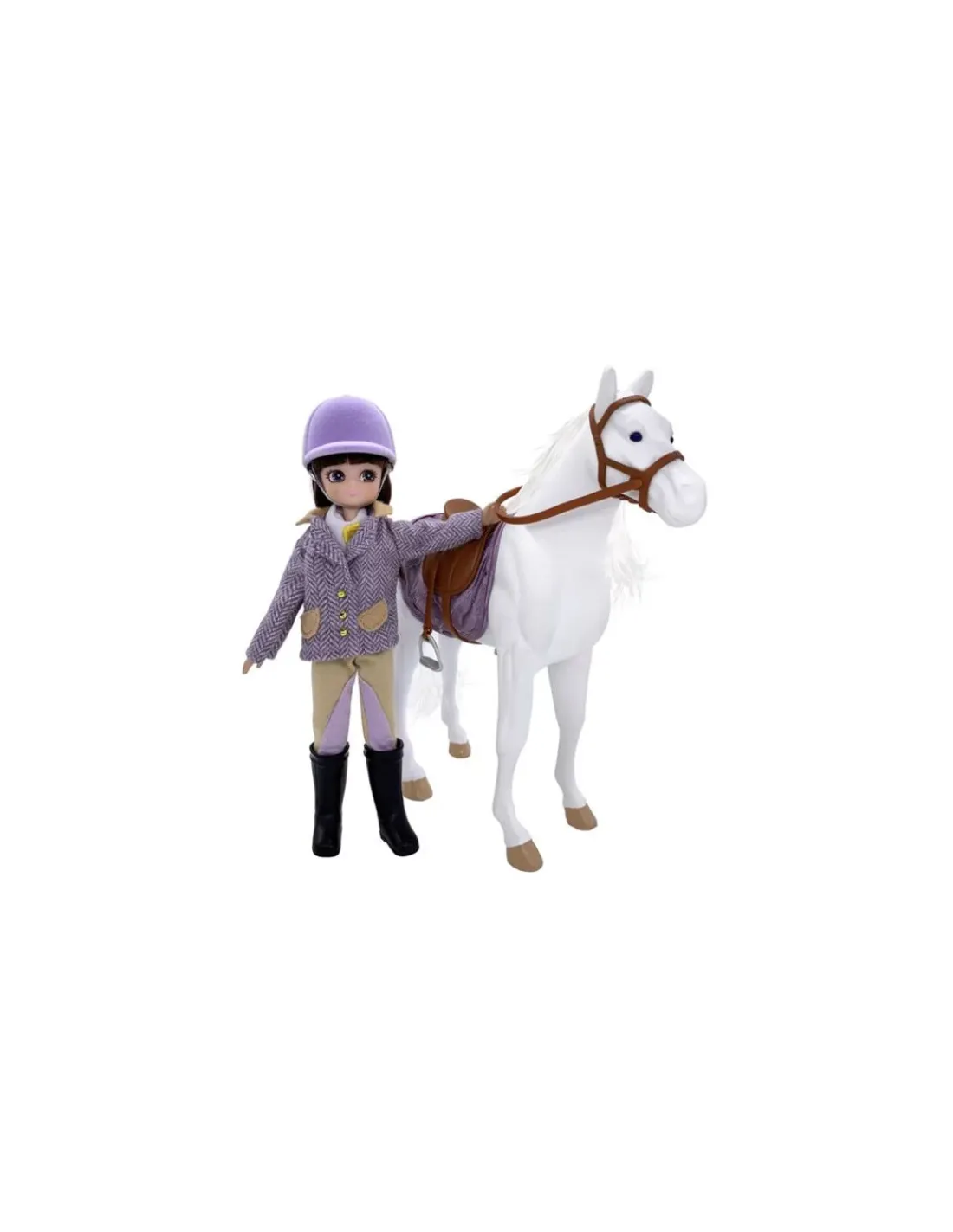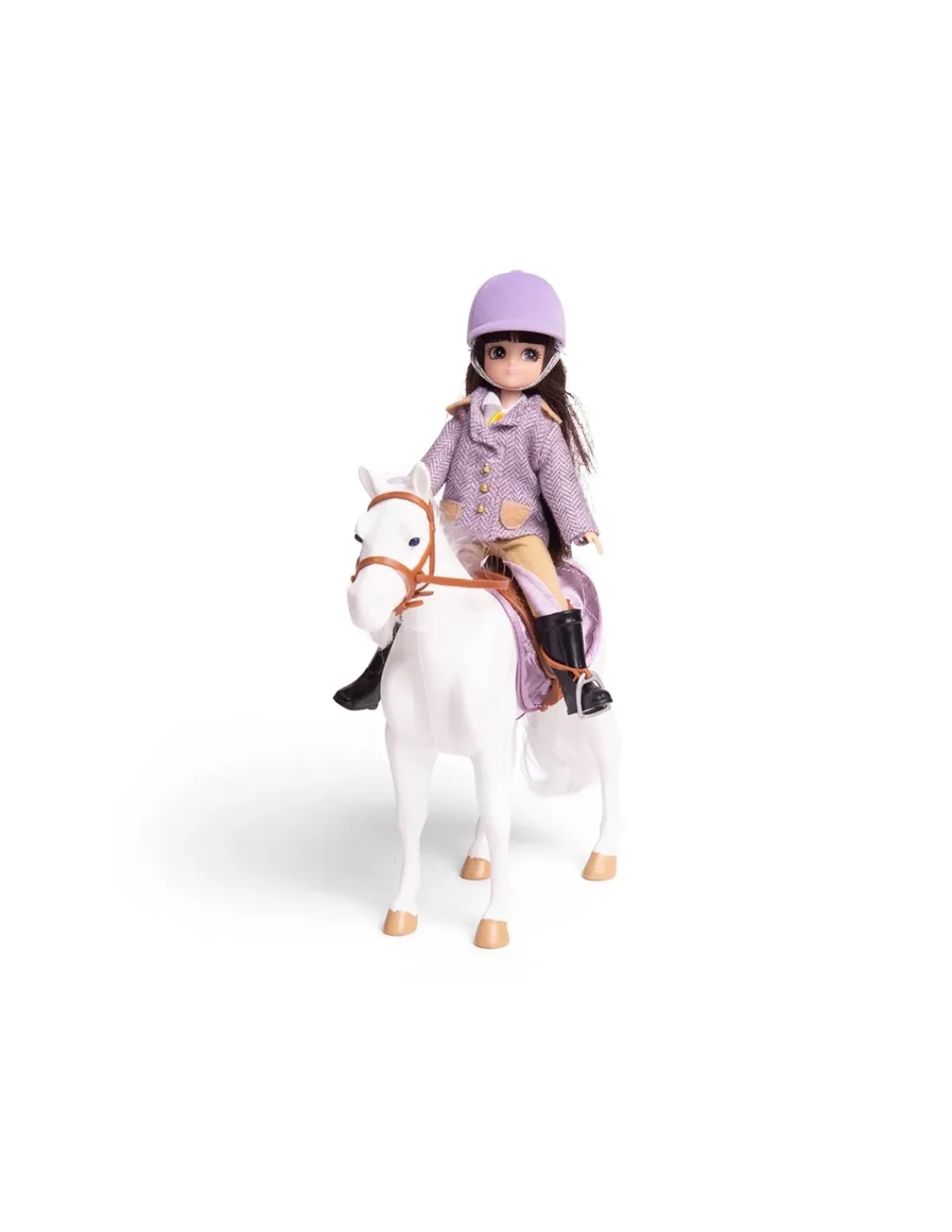 Lottie veut partager son amour de l’équitation et de la randonnée avec son cheval. La poupée est vêtue d’un pantalon d’équitation, d’une paire de bottes, d’une bombe, une chemise et sa veste en tweed.