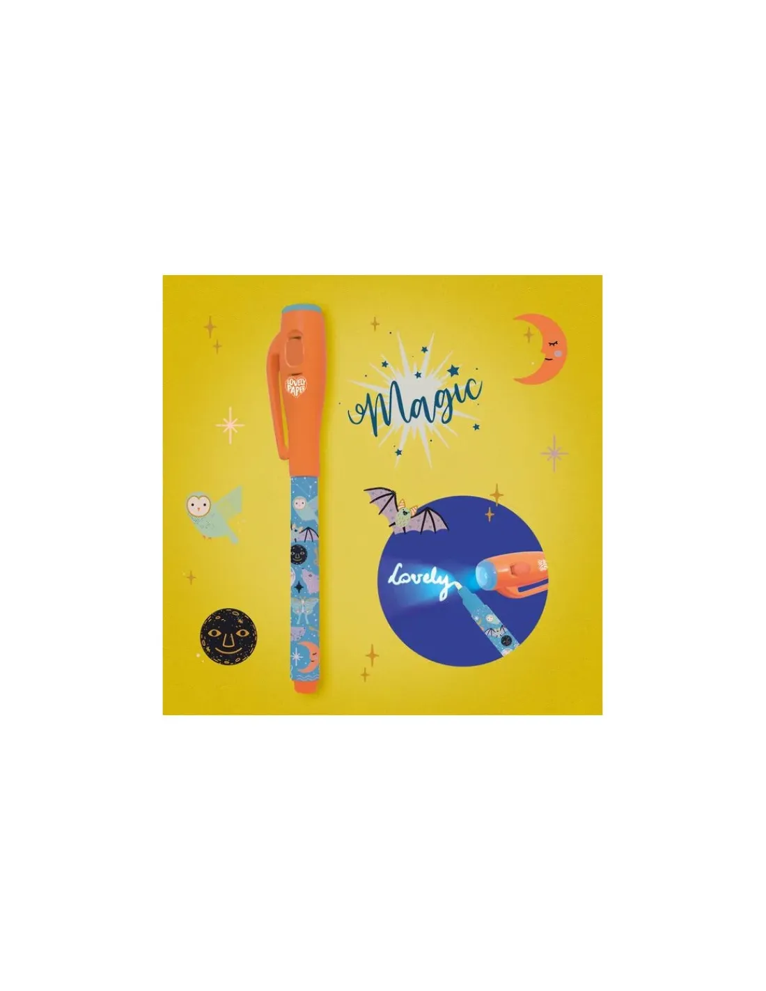 Découvrez le feutre magique Camille de Lovely Paper by Djeco, un cadeau de papeterie original à offrir aux copains et aux copines. Votre enfant va s’amuser à écrire à l’encre invisible puis faire apparaître ses écrits grâce à la lampe UV qui se trouve dans le capuchon.