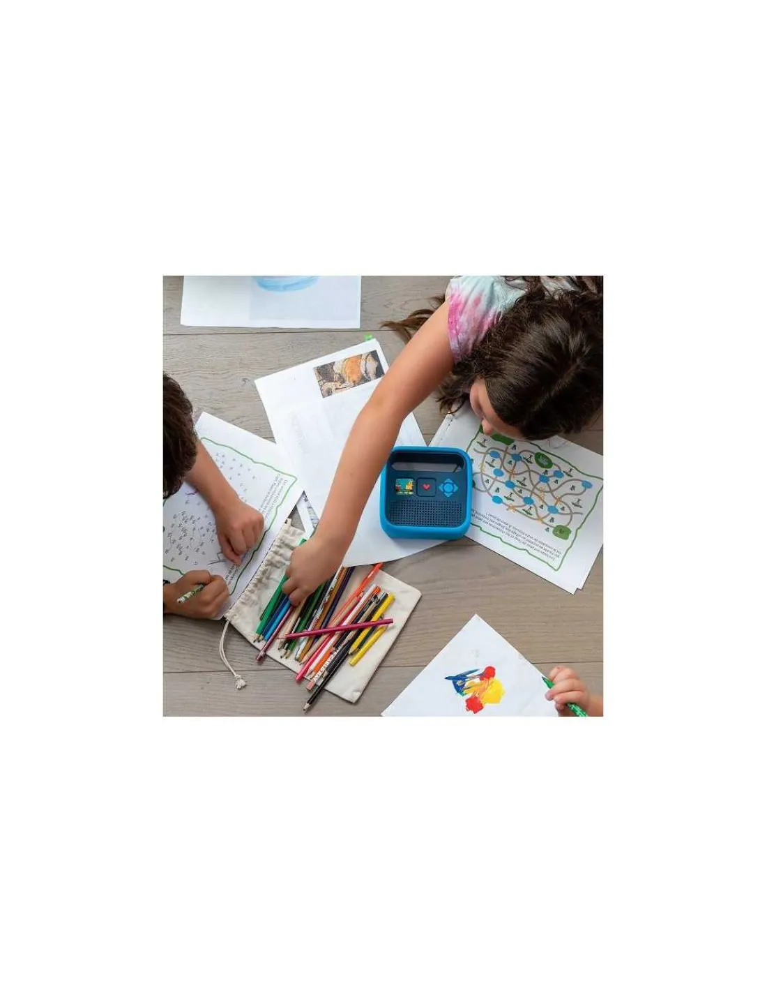 Découvrez la Coque de protection bleu azur pour enceinte Merlin, une coque toute douce en silicone épais pour protéger l’enceinte Merlin des chutes et chocs répétés et son pochon de rangement en coton.