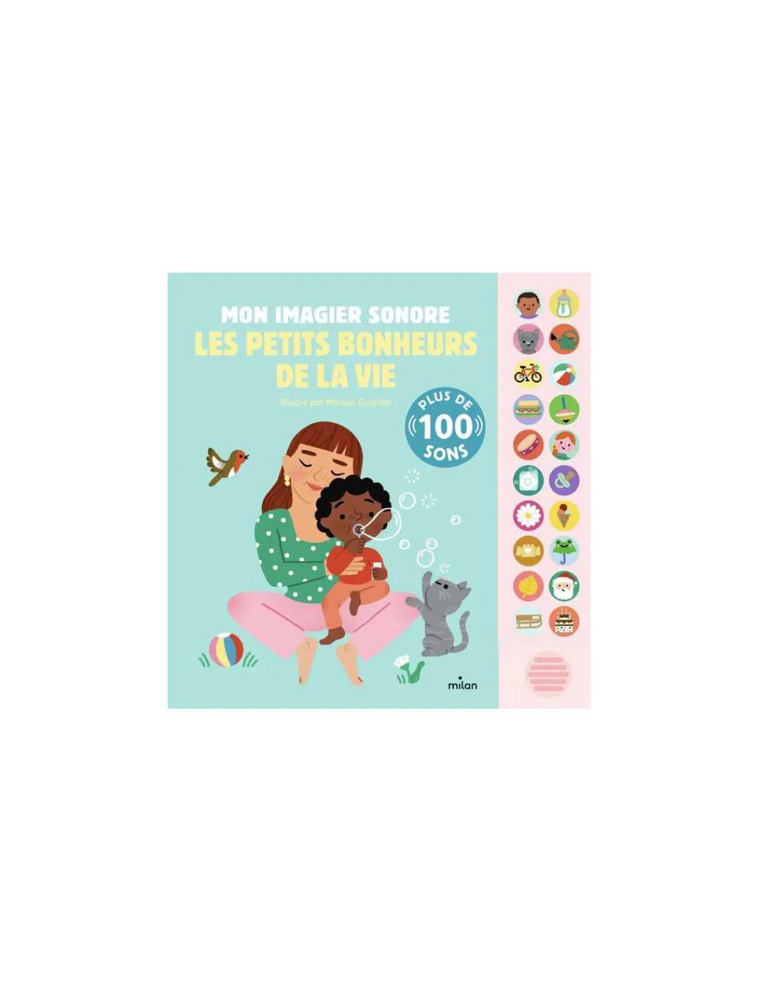 Découvrez mon imagier sonore Les petits bonheurs de la vie des éditions Milan, un livre sonore pour les enfants de 1 à 3 ans sur le thème des sons et des plaisirs.