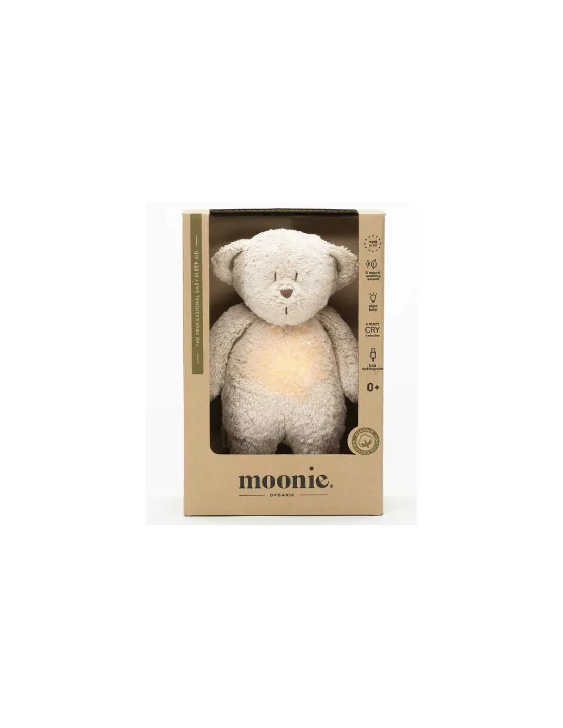 Découvrez la peluche veilleuse musicale ourson Sable de Moonie, une peluche toute douce en forme d’ours qui aide bébé à s’endormir paisiblement dès la naissance.