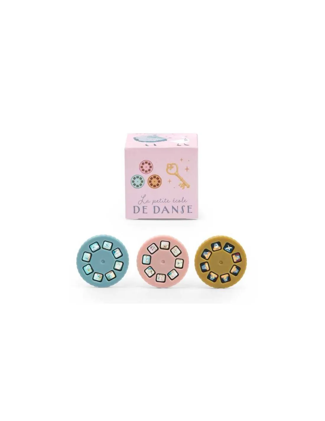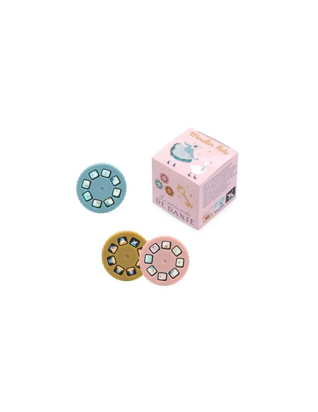 Découvrez la boite de 3 disques pour lampe à histoires de la collection La Petite École de Danse de Moulin Roty, 3 histoires à insérer dans n’importe quelle lampe à histoire pour projeter 3 histoires sur le thème de la collection.