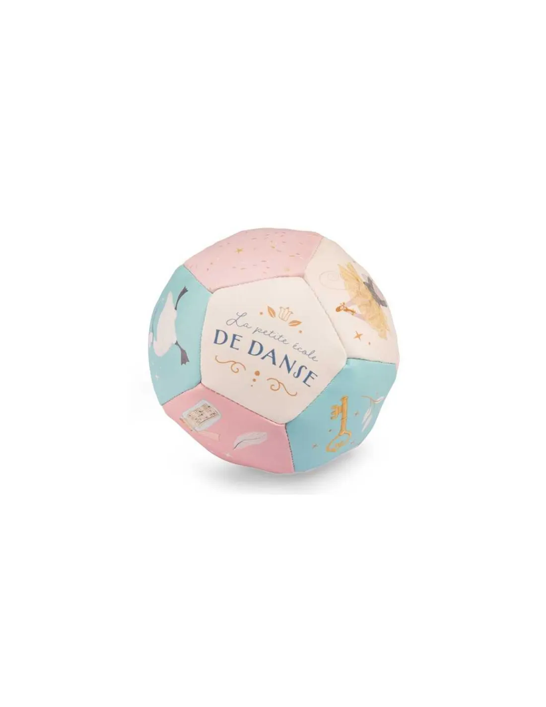 Découvrez la balle souple de la collection La petite école de danse de Moulin Roty, un petit ballon coloré tout léger pour amuser bébé. Une balle souple en vinyle pour jouer à l’intérieur comme à l’extérieur de la maison. Ses faces colorées l’entraîneront pour une immersion avec les personnages de la petite école de danse.