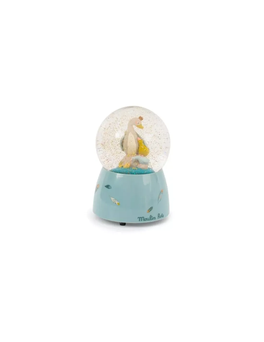 Découvrez la boule à neige musicale de la collection Le voyage d’Olga de Moulin Roty, une boite à musique en forme de boule à neige qui fera un magnifique cadeau décoratif pour la chambre de bébé. Olga et ses petites oies au milieu de paillettes dorées avec une jolie mélodie qui viendra bercer bébé au moment du coucher…