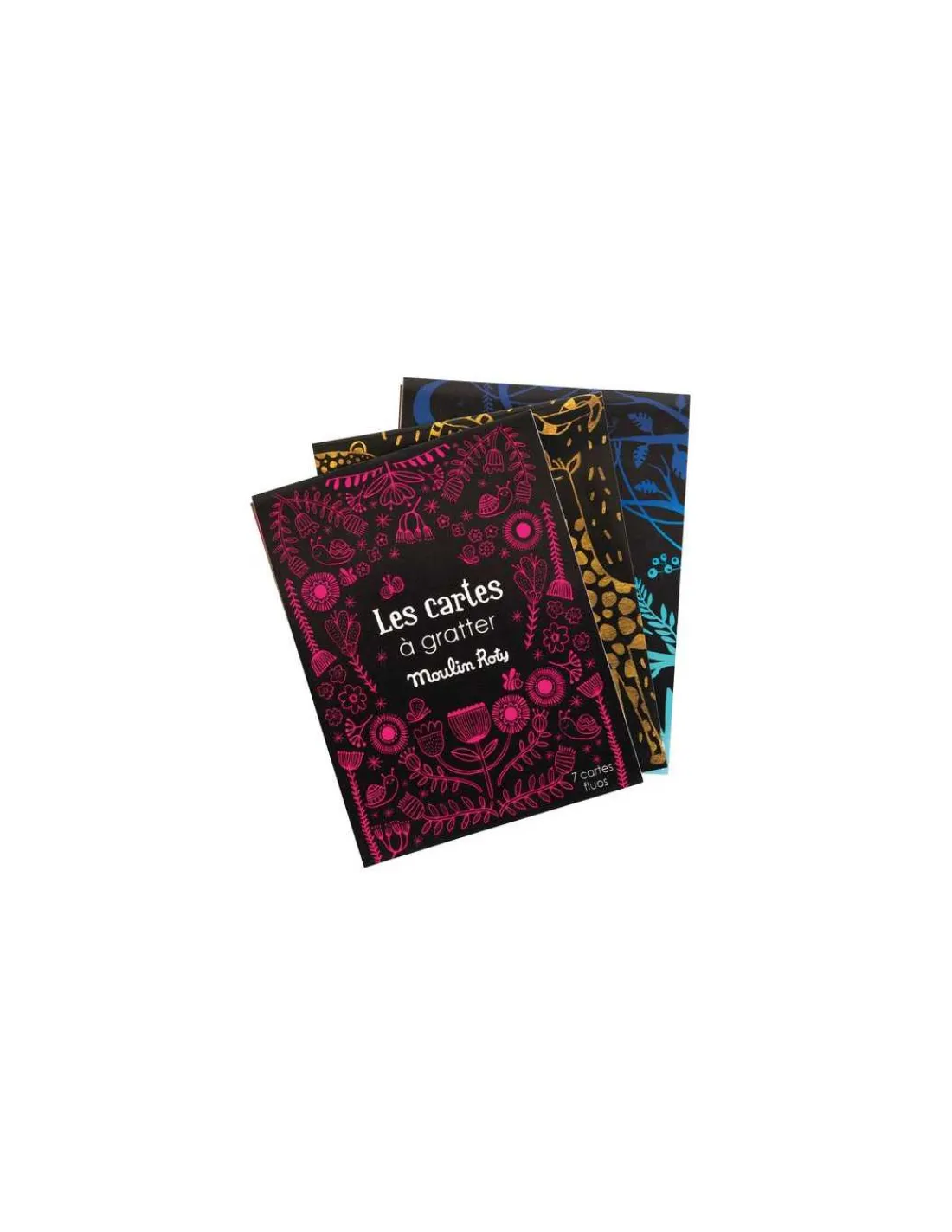 Découvrez les cartes à gratter fluo de Moulin Roty, une activité créative avec 7 feuilles à gratter pour les enfants à partir de 5 ans.