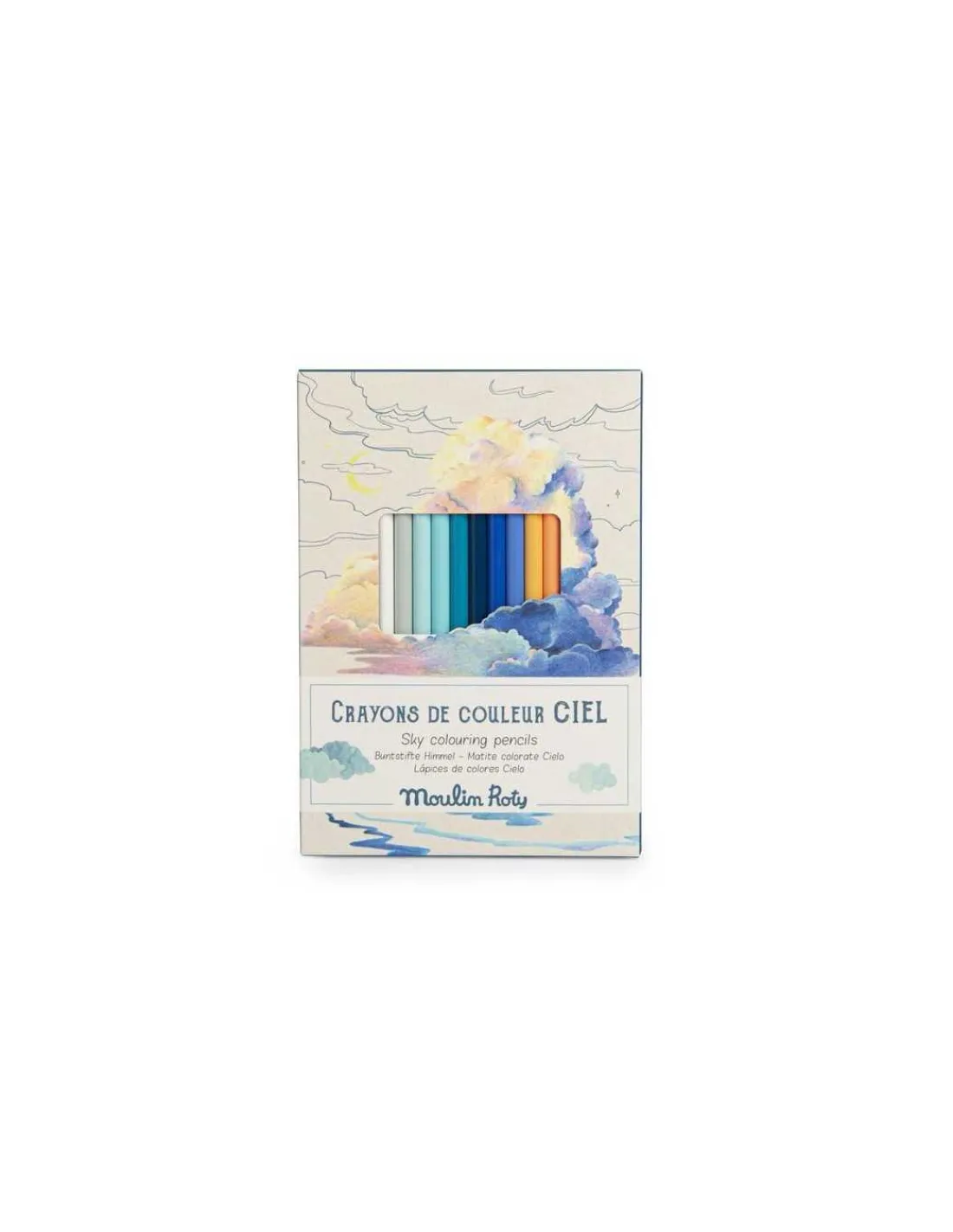 Découvrez le coffret Crayons de couleur et cartes Ciel de la collection Le Jardin du Moulin de Moulin Roty, un coffret comprenant 12 crayons de couleur sur le thème du ciel avec 3 cartes à colorier.