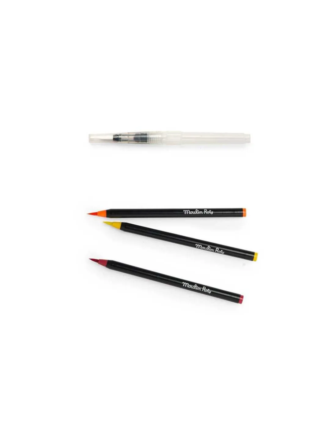 Découvrez les feutres pinceaux aquarellables de la collection Le Jardin du Moulin de Moulin Roty, un magnifique coffret de 12 feutres à pointe souple conçu pour stimuler la créativité des enfants dès 3 ans.