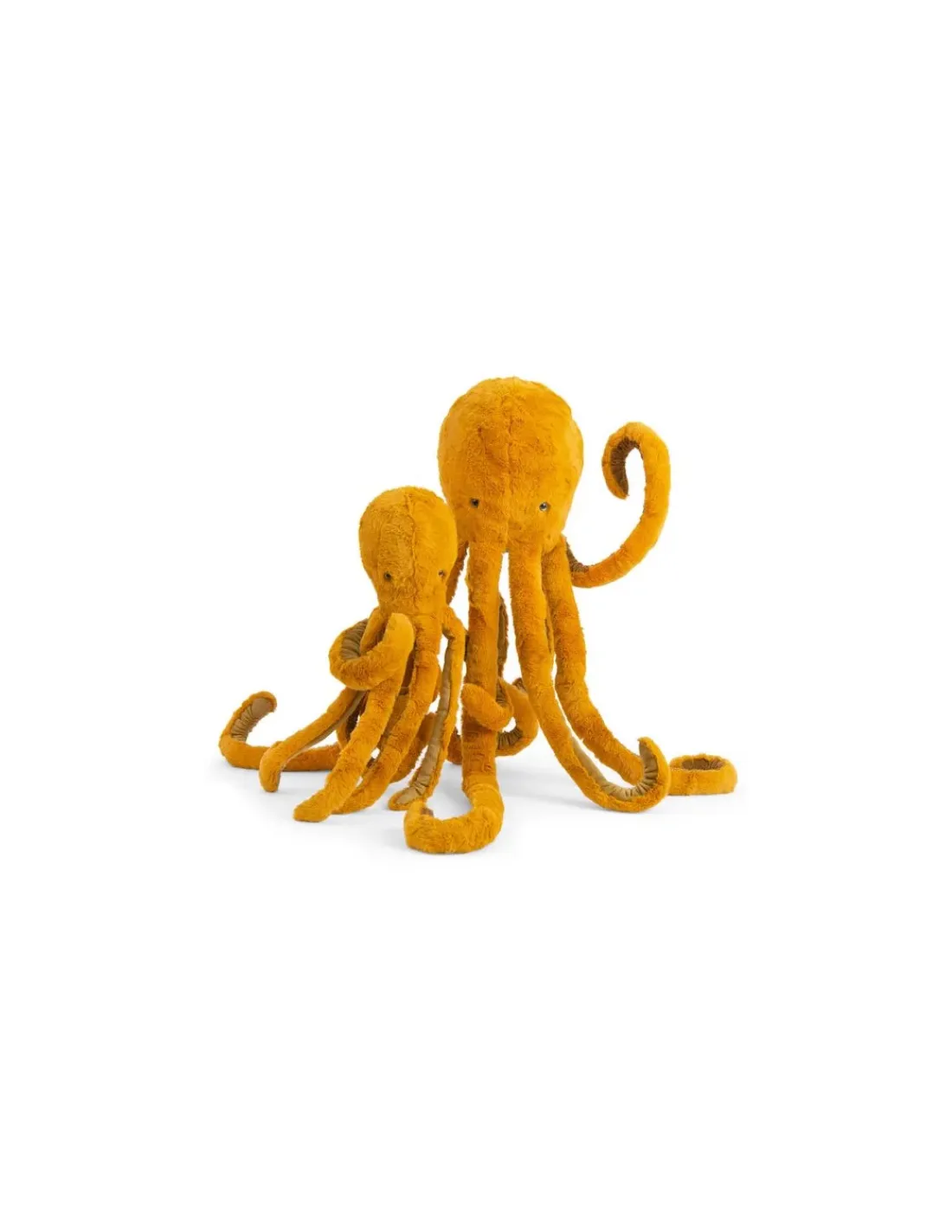 La couleur préférée de cet animal marin est le doré. Son corps tout en fourrure en est couvert, jusque sous ses tentacules pailletés en velours, qui rebondissent au rythme de ses mouvements. Un animal fascinant au regard attendrissant, qui deviendra le compagnon préféré de votre enfant.