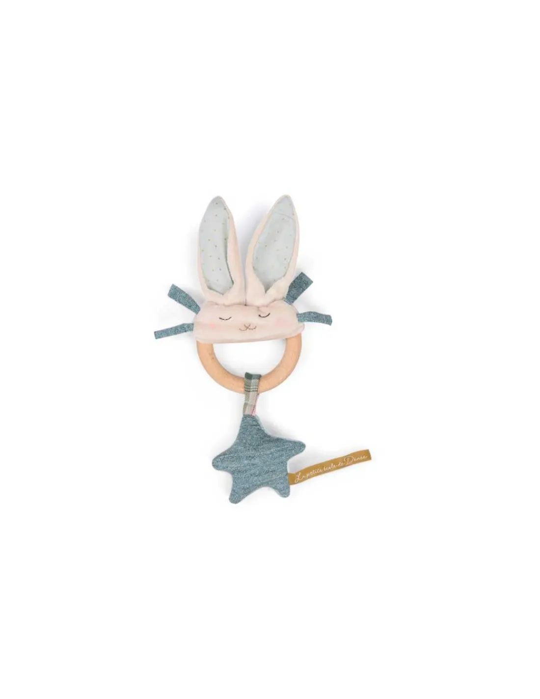 Découvrez le hochet anneau bois lapin bleu de la collection La petite école de danse de Moulin Roty, un jouet d’éveil qui renferme un hochet pour ravir les bébés.