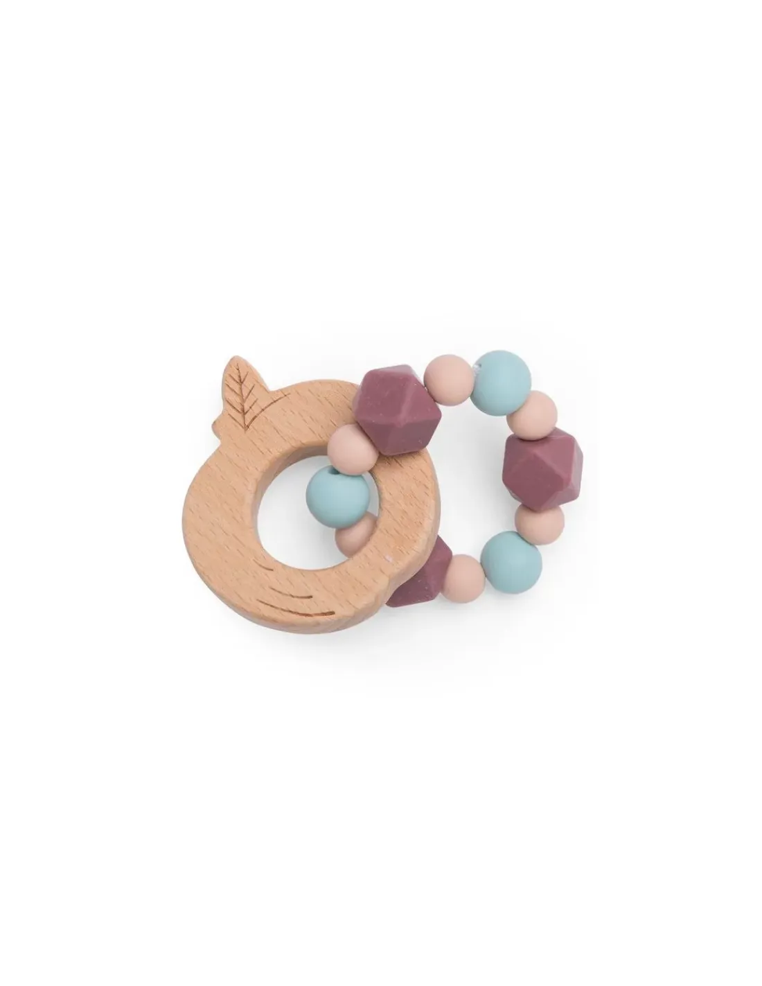 De quoi jouer et mâchouiller pour bébé avec ce hochet de dentition en bois et silicone. Bi-matière, il permet à bébé de choisir ce qui soulagera le mieux ses gencives douloureuses. Avec sa forme, il est facile à saisir par les petites mains.