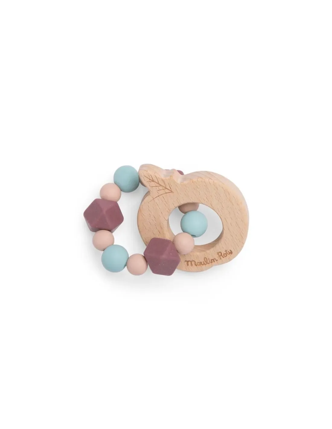 Découvrez le hochet anneau de dentition pomme de la collection Après la pluie de Moulin Roty, un jouet d’éveil en bois et en silicone qui accompagnera bébé au quotidien.