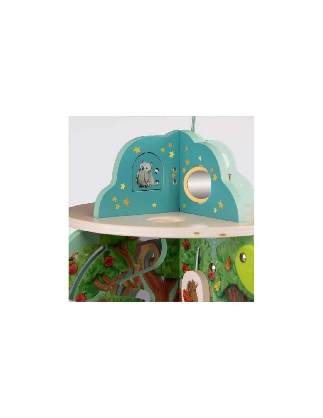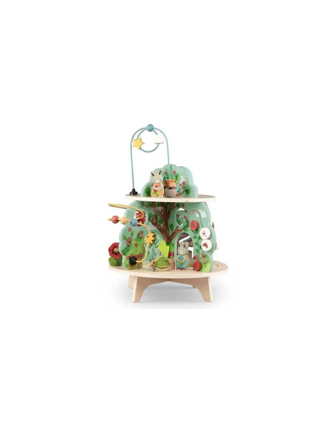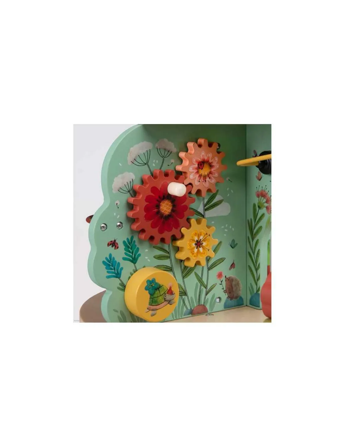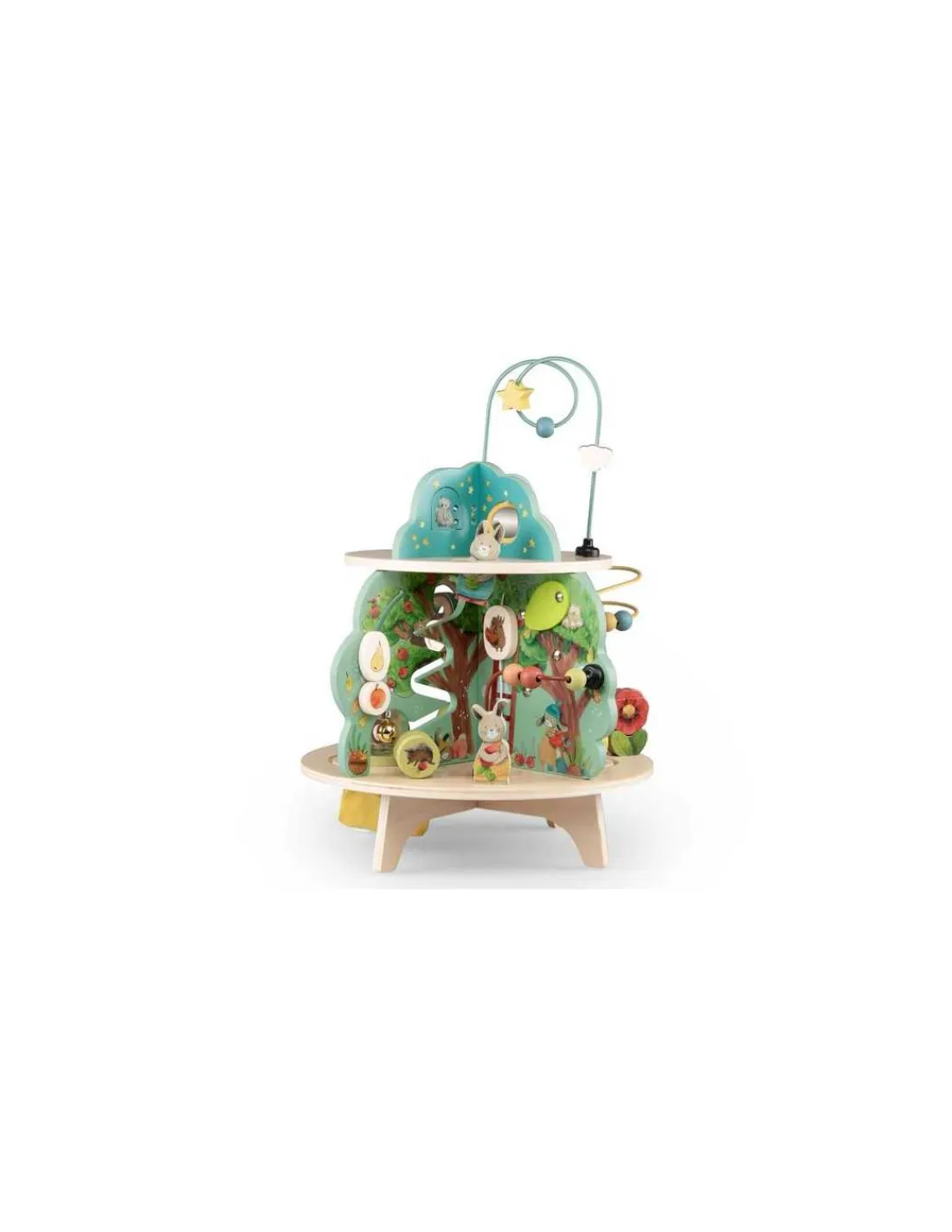 Ce grand jouet en bois d’activités se compose de 4 univers joliment illustrés. Idéal pour l’éveil et les premiers apprentissages des tout-petits avec ses activités : grelot, engrenages, boulier, labyrinthes, miroir, feutrine pour la découverte de la texture.