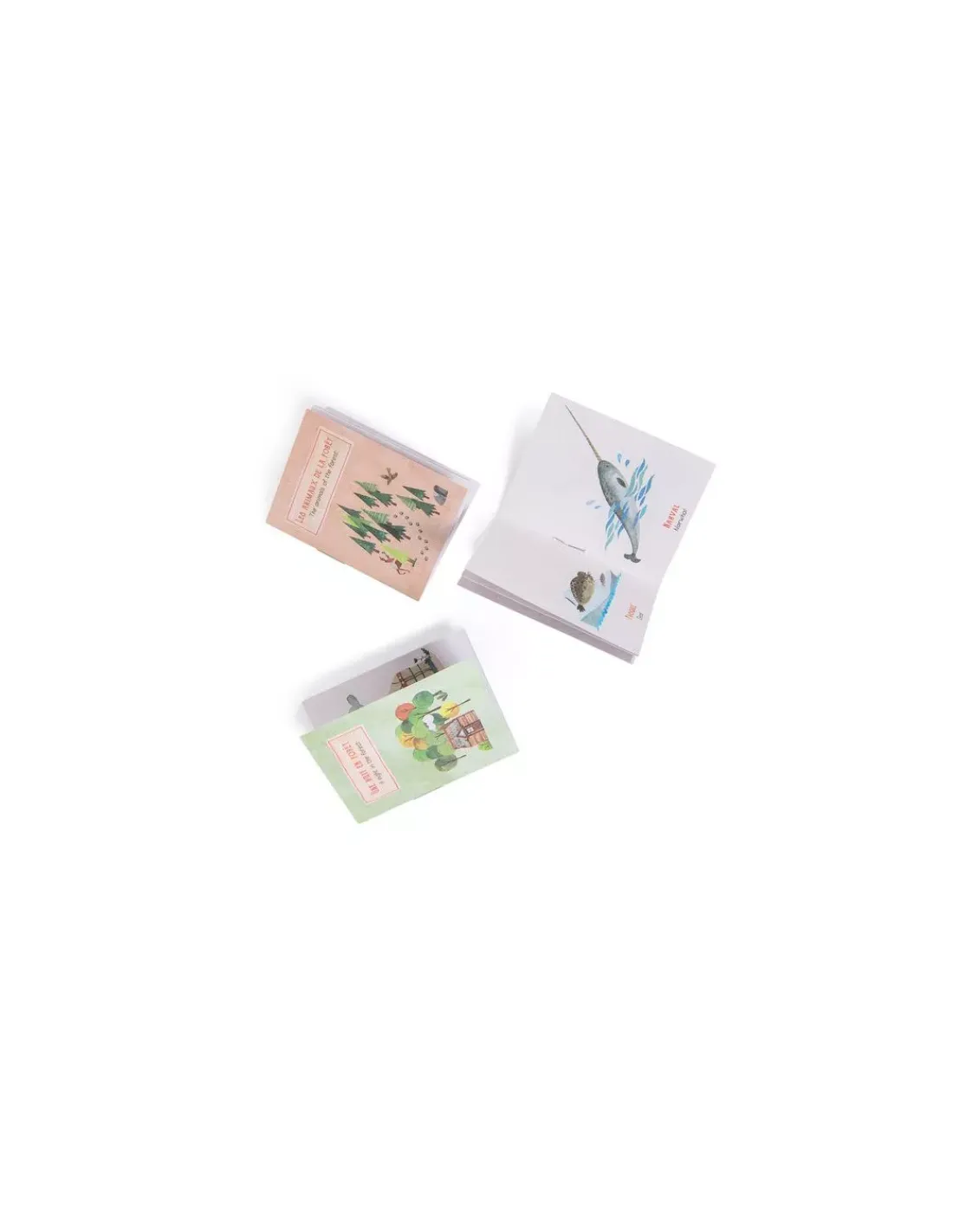 Lampe à histoires à projeter au mur grâce à ses trois disques comprenant 8 images aux illustrations poétiques. Inventez de merveilleuses histoires en pleine nature, et apprenez le nom des animaux en français/anglais grâce à ses 3 mini livres inclus.