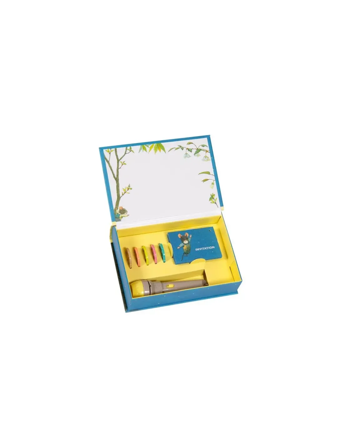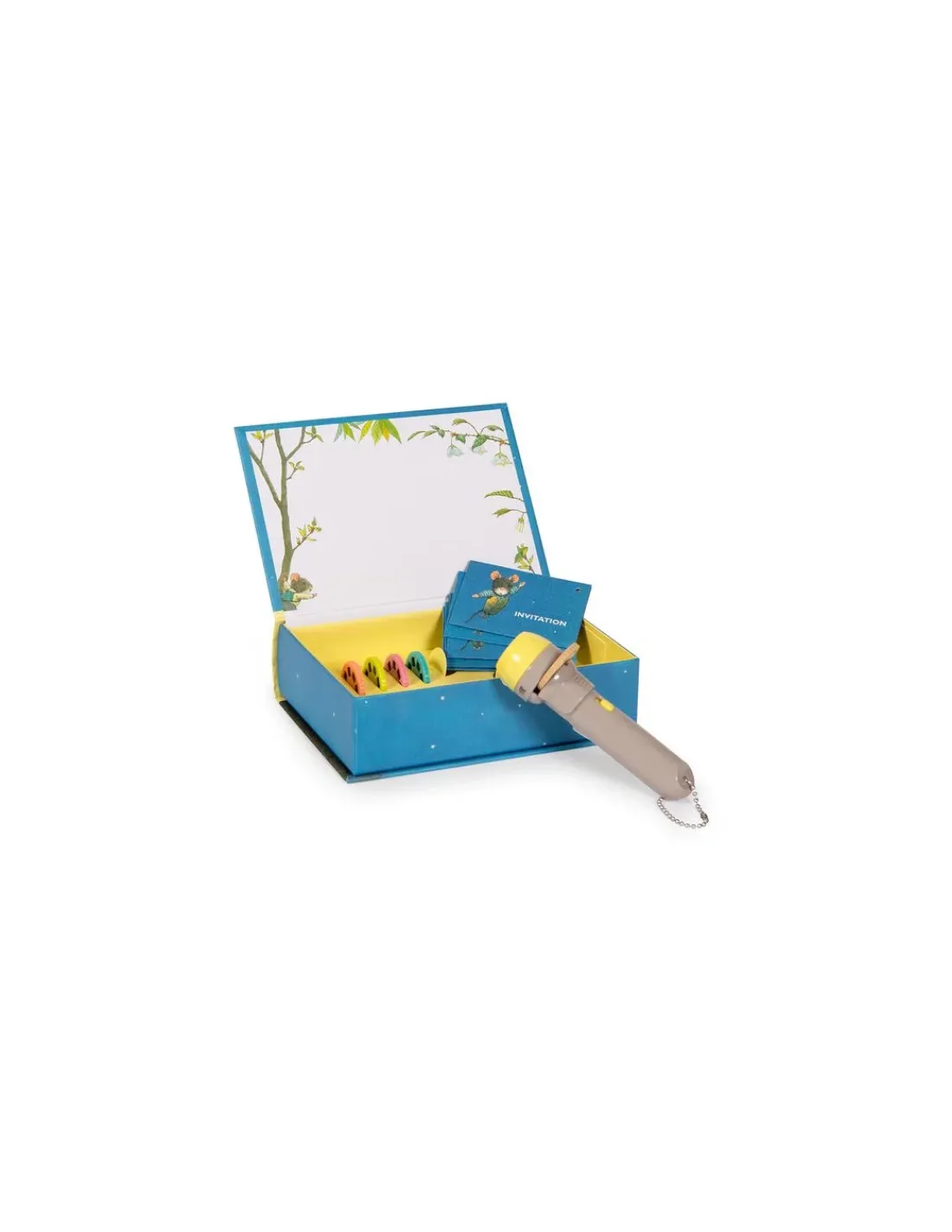 Un livre magique que l’on ouvre comme une boîte à trésors, qui renferme précieusement une lampe à projeter, 5 disques et 5 adorables invitations pour projeter de belles histoires sur son écran intégré. Grâce à ce joli cadeau, votre enfant pourra découvrir les aventures de la famille Souris, classique de l’école des loisirs créé par Kazuo Iwamura.