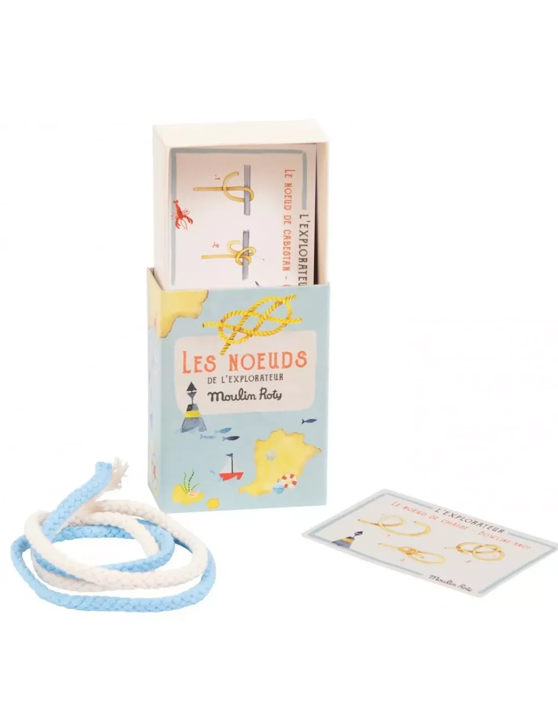 Découvrez le coffret les noeuds marins de la collection Le jardin du Moulin de Moulin Roty, un coffret pour apprendre à faire des noeuds avec des cordes.