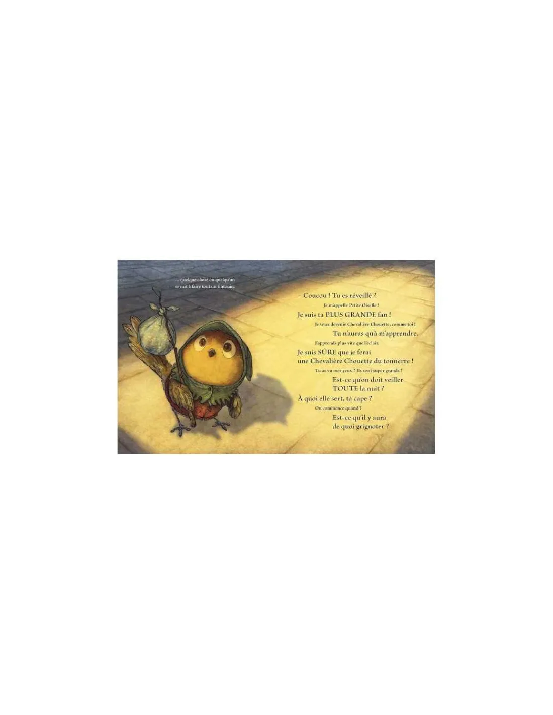Chevalier Chouette est le capitaine de la garde de nuit. C’est quelqu’un de très important. Chaque nuit, il veille sur le château ; chaque matin, il profite d’un repos bien mérité. Sa vie est aussi réglée que du papier à musique. Jusqu’au jour où… quelque chose ou quelqu’un se met à faire tout un tintouin et chamboule son quotidien! Mais ne dit-on pas que l’on a souvent besoin d’un plus petit que soi ?