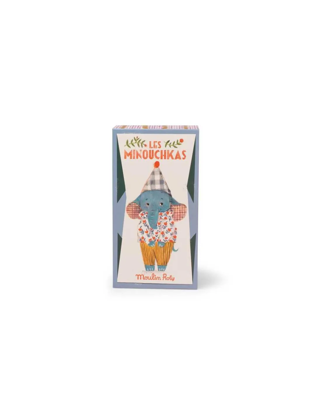 Découvrez Pablo l’éléphant de la collection Les Minouchkas de Moulin Roty, une adorable poupée articulée de 25 cm imaginée par l’artiste Lucille Michieli, à offrir aux enfants dès l’âge de 10 mois.
