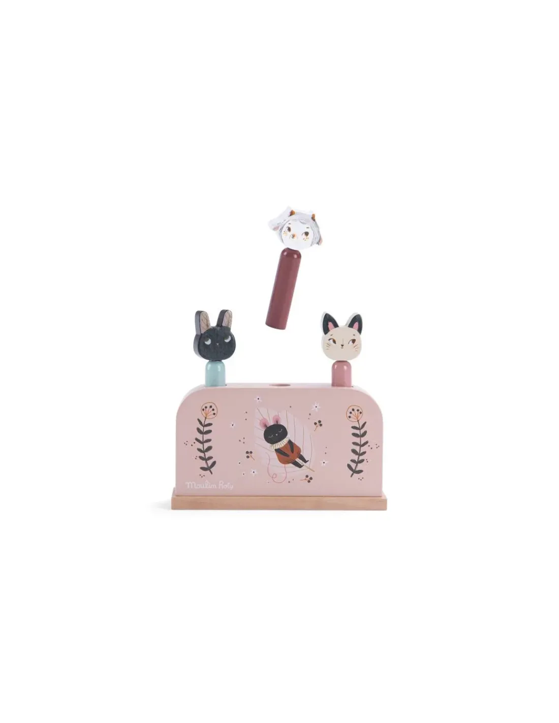 Découvrez le Pop up de la collection Après la pluie de Moulin Roty, un jouet d’éveil en bois aux couleurs douces pour amuser les enfants dès 12 mois.