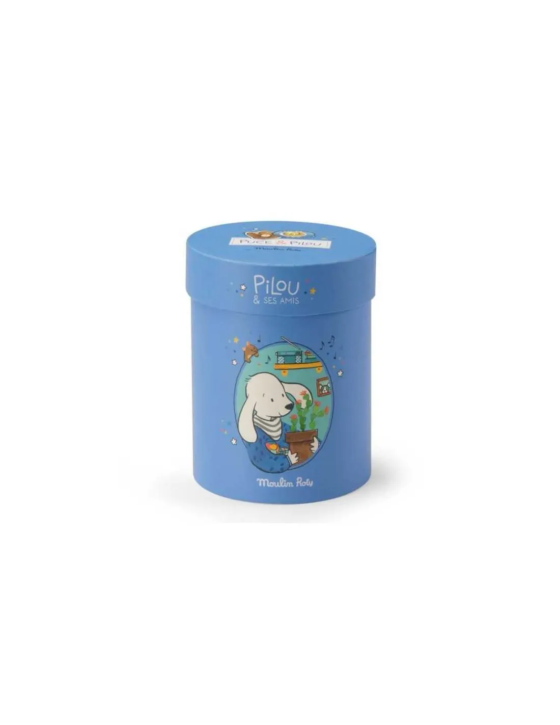 Tendre Pilou,le compagnon parfait pour des câlins tout doux ! Il peut se transporter partout grâce à sa taille idéal pour les bras des tout-petits. Pilou attend sagement dans une boite toute ronde joliement illustrée.