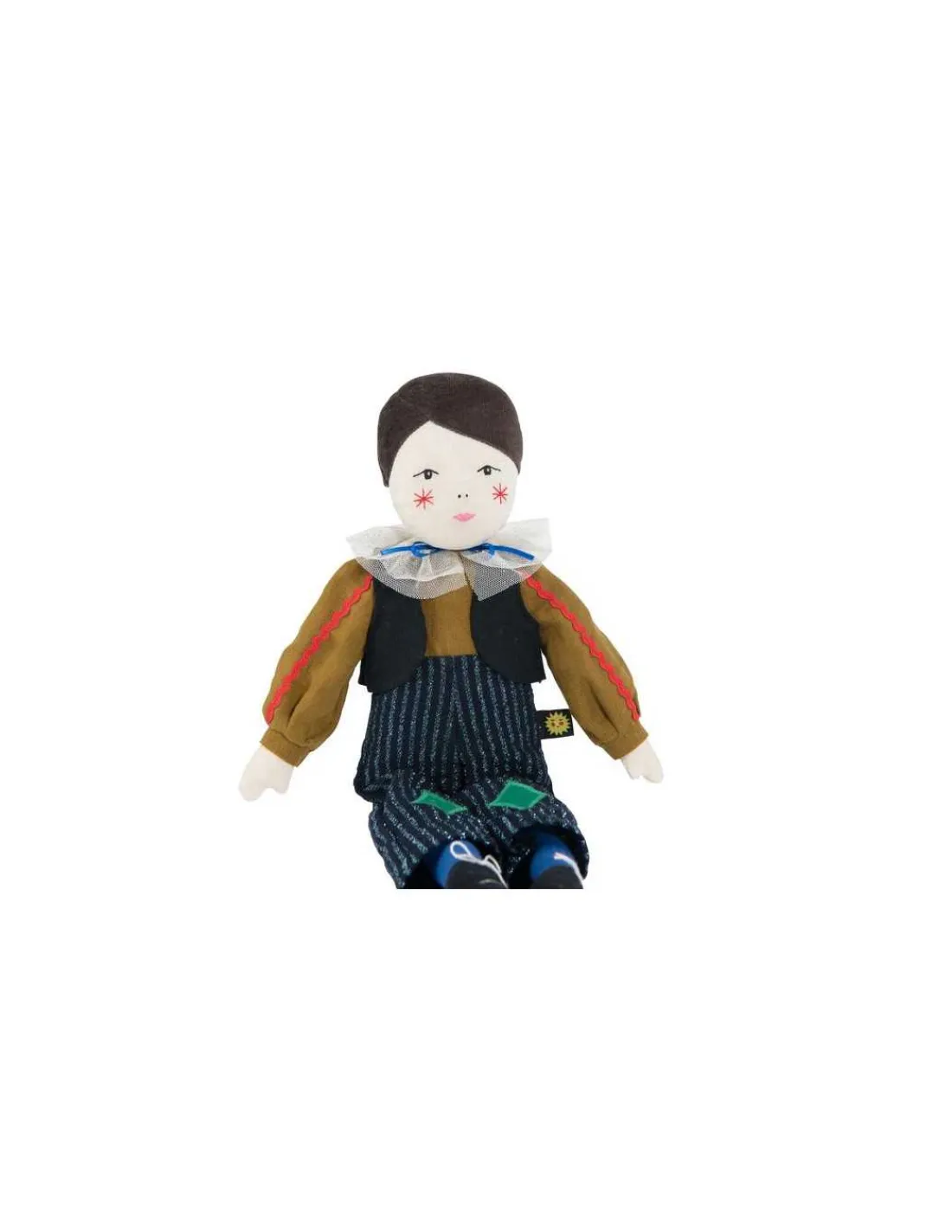 Découvrez la Poupée Enzo de la collection Les comètes filantes de Moulin Roty, une poupée en tissu de 43 cm au visage doux et entièrement brodé.