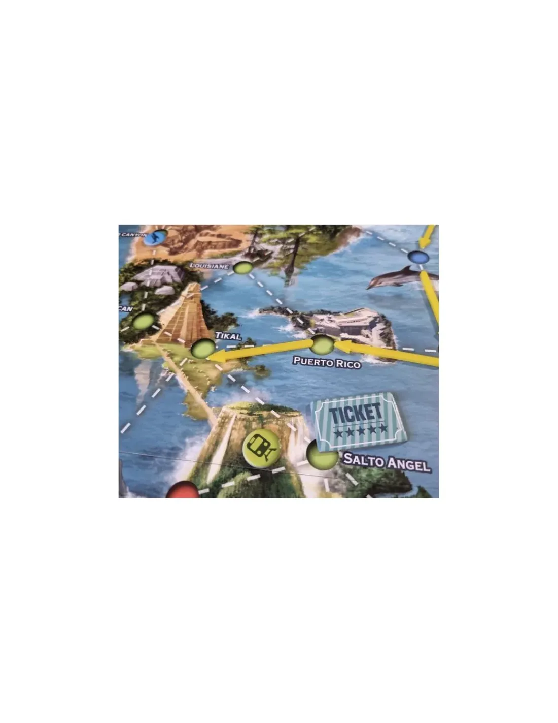 La boite de jeu contient 1 plateau de jeu, 80 cartes Expédition, 135 flèches de 3 couleurs, 40 tickets, 24 jetons de 6 couleurs + 6 grands jetons, 4 aides de jeu et les règles du jeu.