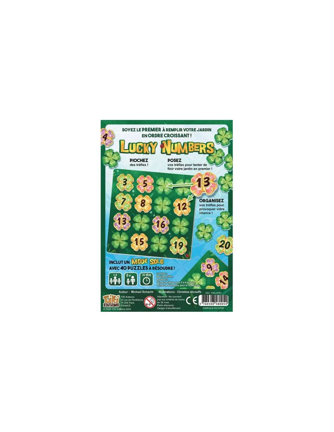 Découvrez le jeu Lucky numbers, un jeu d’ambiance à partir de 8 ans entre un sudoku et un jeu de loto où vous devrez provoquer votre chance pour gagner. Votre but est d’être le premier à remplir votre jardin de trèfles.