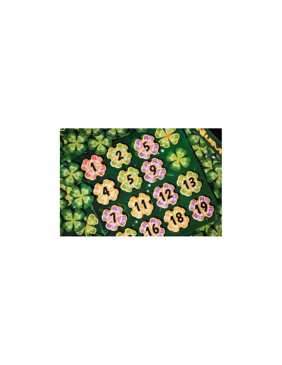 Le jeu contient 80 tuiles Trèfle, 4 plateaux, un livret de 40 puzzles pour le mode Solo et les règles du jeu.