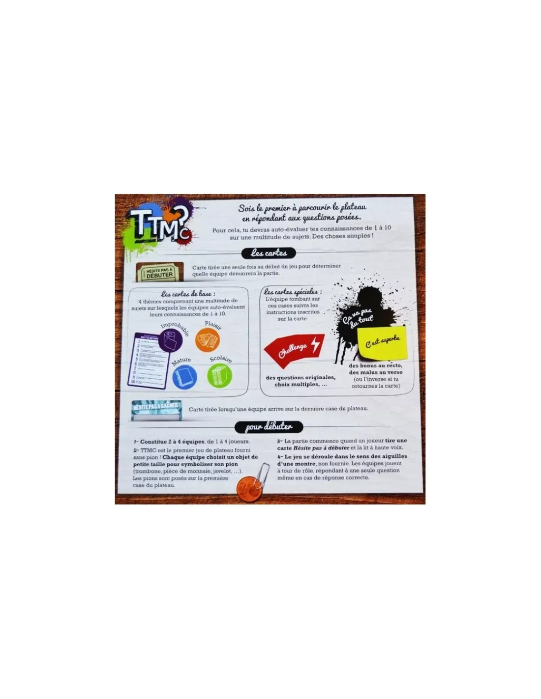 Découvrez le jeu TTMC Tu te mets combien?, un jeu d’ambiance sous forme de quiz de culture générale à partir de 14 ans où vous devrez évaluer vos connaissances de 1 à 10 avant de répondre aux questions sur des sujets originaux ou classiques, intéressants ou farfelus.