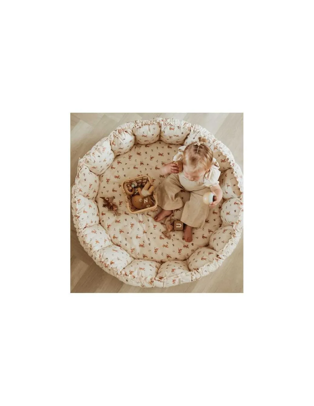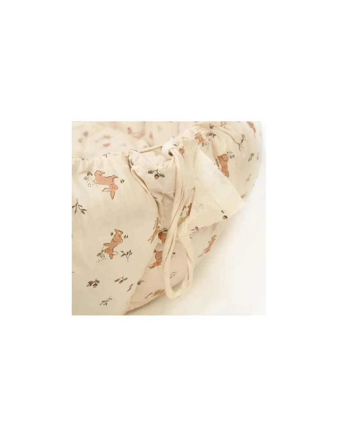 Découvrez le tapis de jeu 3 en 1 Bloom rabbit de Play&Go, un tapis de jeu confortable 100% coton illustré avec des lapins et en forme de fleur, dont les pétales peuvent se relever pour créer un nid douillet pour votre bébé, ou encore en panier de rangement pour rassembler les jouets de votre enfant dans sa chambre ou dans une salle de jeu.
