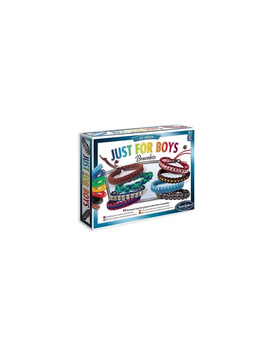 Découvrez l’atelier créatif Bracelets Just for boys de Sentosphère, un coffret créatif pour créer des bracelets très masculins de métal, cuir et cordons à entrelacer à partir de 8 ans.