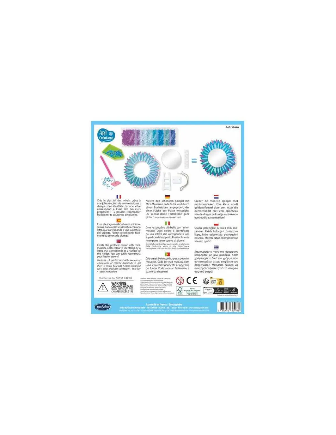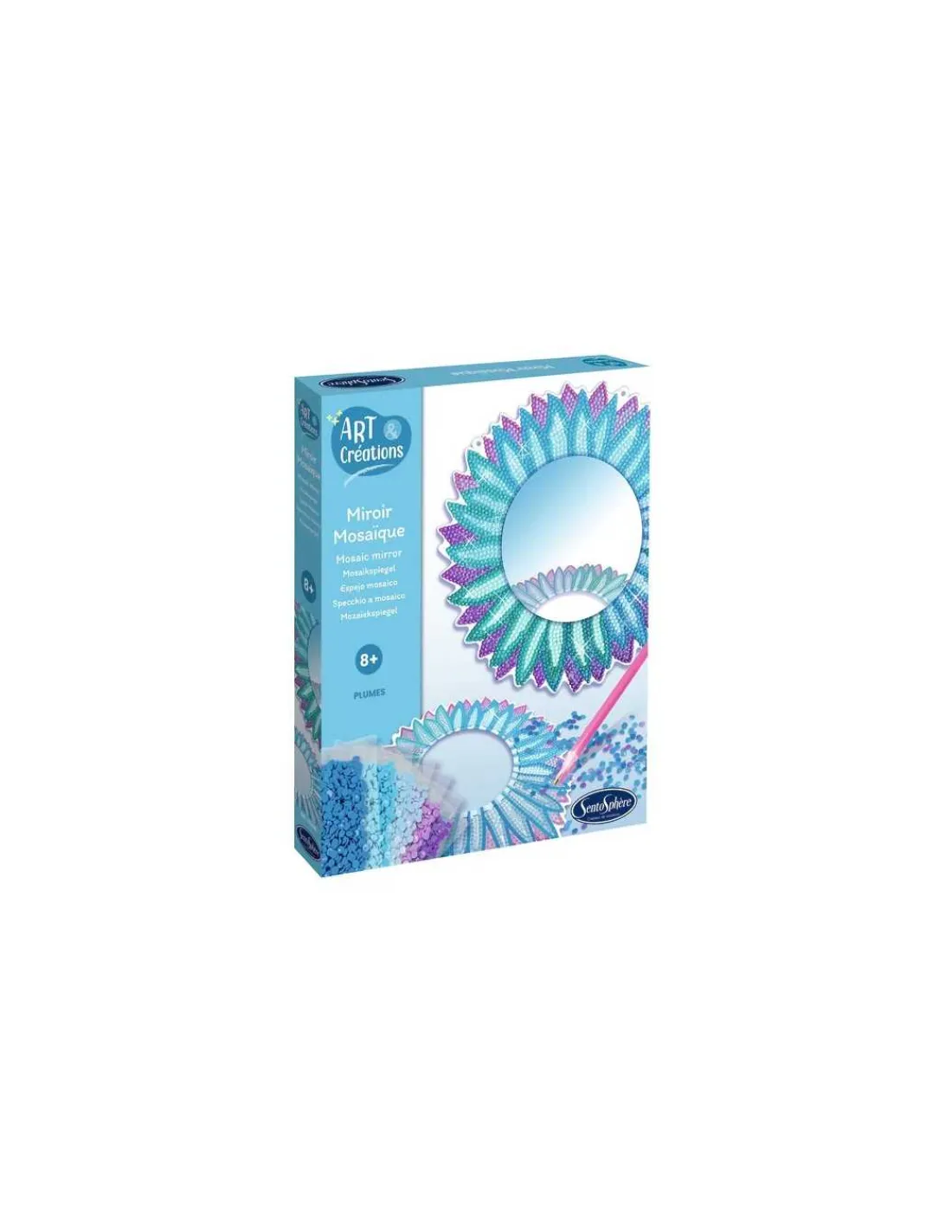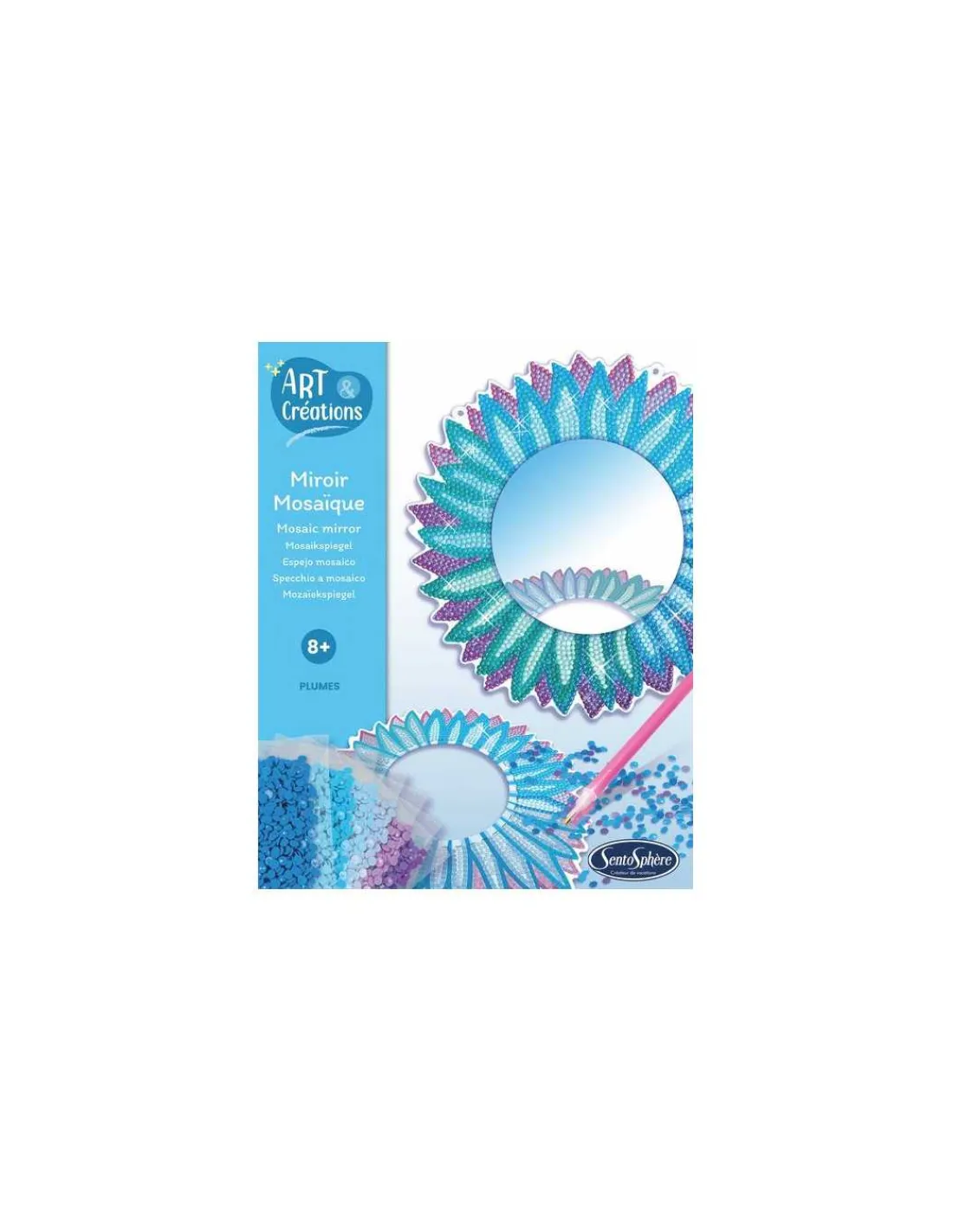 Découvrez le Miroir mosaïques plumes de Sentosphère, un loisir créatif pour les enfants à partir de 8 ans qui vont réaliser la décoration d’un miroir avec des strass colorés.